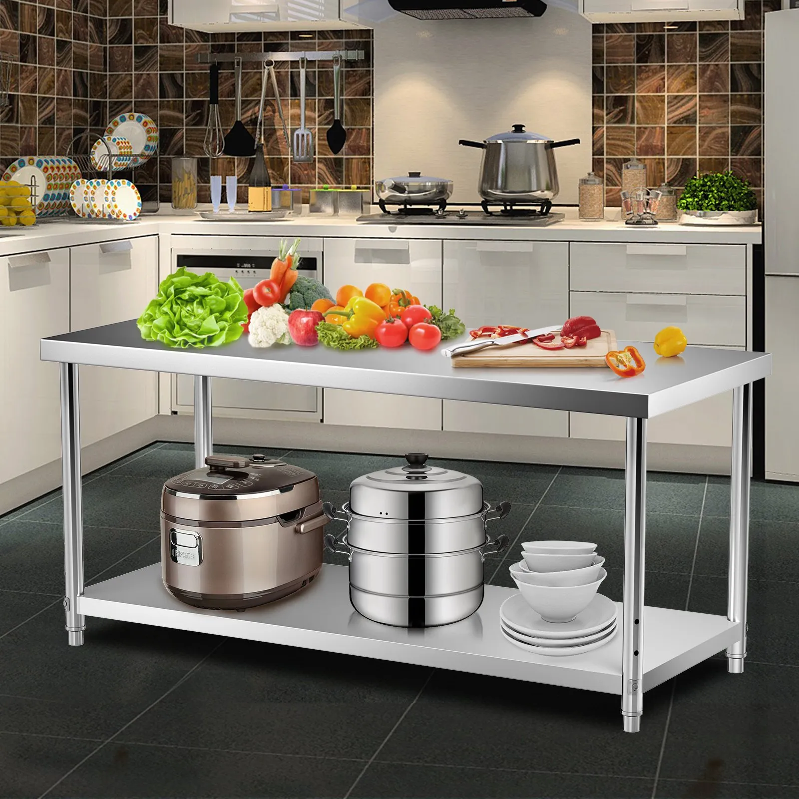 Robustný a odolný materiál: Všetky časti nášho kuchynského pracovného stola sú vyrobené z nehrdzavejúcej ocele, vďaka čomu je odolný voči hrdzi a korózii v akomkoľvek prostredí. Vďaka drôtenému povrchu ponúka tento stôl atraktívny vzhľad, ľahko sa nepoškriabe a zanecháva minimálne škvrny od vody. Vďaka vysoko kvalitnému materiálu sa stôl ľahko čistí handričkou a je vhodný na dlhodobé používanie.