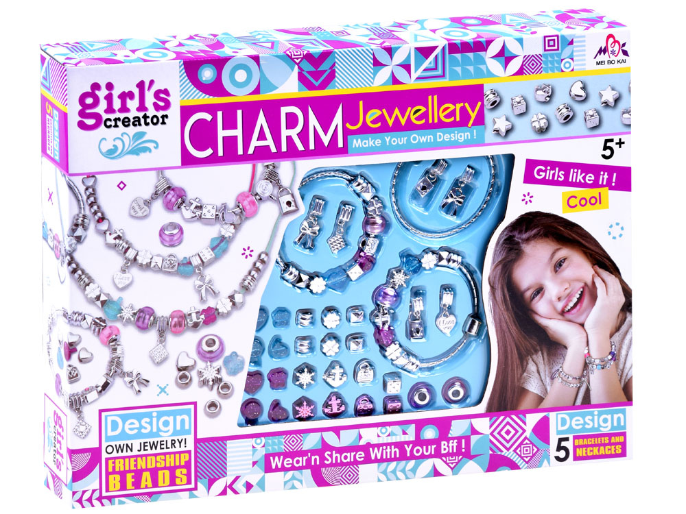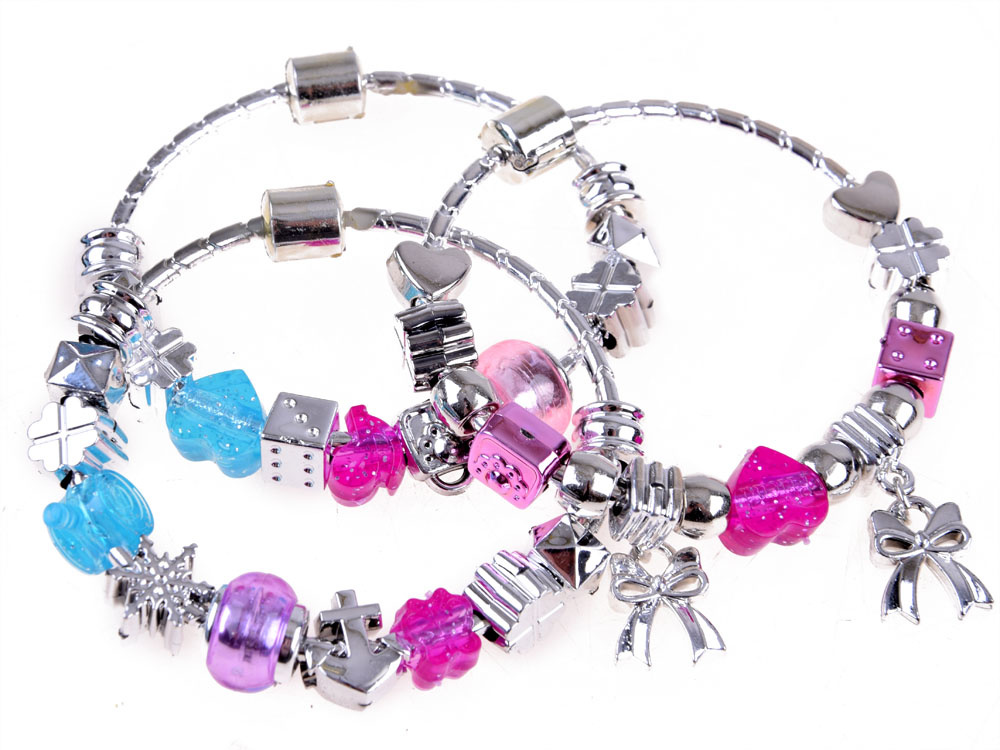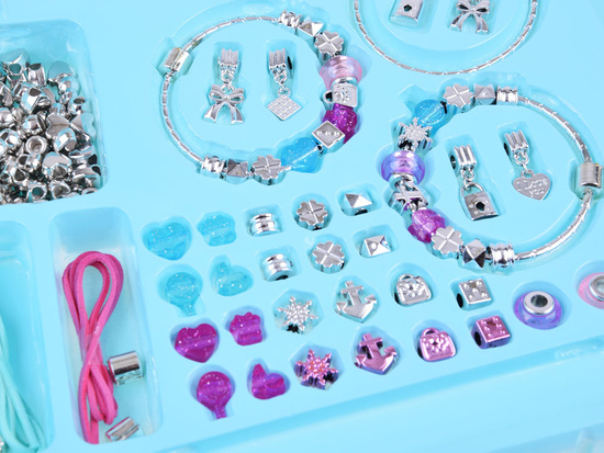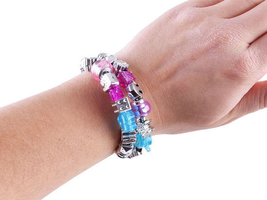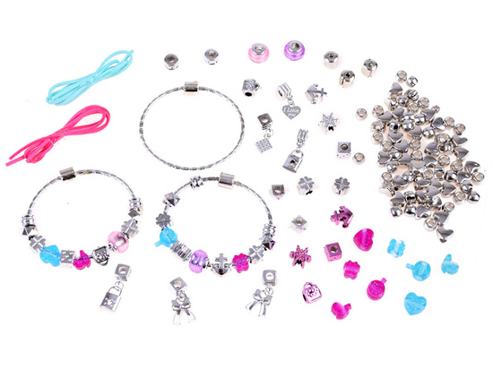 Táto sada strieborných korálok na výrobu vlastného, jedinečného náramku poskytne každému dievčatku množstvo pozitívnej aktivity. Dievčatá, ktoré majú rady ručné práce, nájdu množstvo inšpirácie na tvorbu vlastných šperkov. A samozrejme, každý šperk, ktorý si sami vyrobíte, bude jedinečný. Sada je vyrobená výlučne zo strieborného plastu s ružovými a modrými kryštálmi.