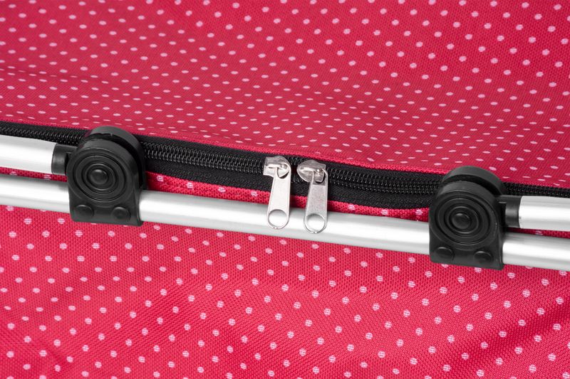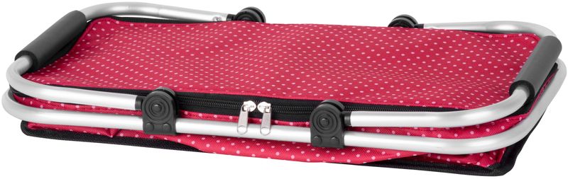 Nákupný košík Jela s krásnou červenou potlačou a dvoma rúčkami bude Váš pomocník pri každodenných nákupoch. Obsahuje vrchný ochranný kryt na zips. Po použití sa ľahko poskladá do kompaktných rozmerov, takže Vám nezaberie veľa miesta. Maximálna nosnosť: 5 kg. Rozmery: 47x28x25 cm