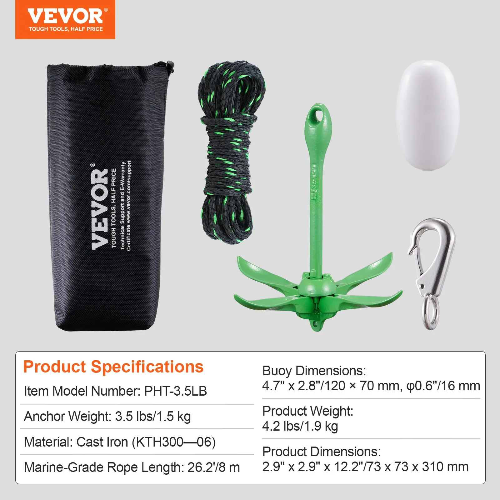 Kotviaca sada na kajak, kotviaca sada na paddleboard s hmotnosťou 3,5 lbs s 8 m lanom a bójkou, skladacia kotva pre malé lode s úložným vreckom a karabínou, príslušenstvo pre kajaky, malé lode a kanoe