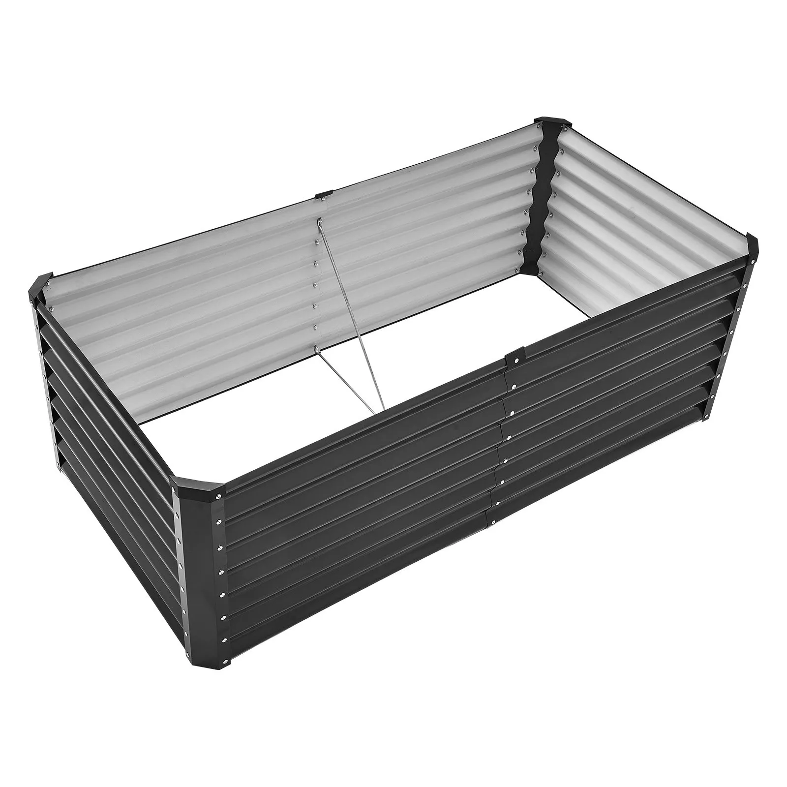 Kovový vyvýšený záhon, 1800x895x600 mm, pozinkovaný vonkajší kvetináč s otvoreným dnom, veľký zeleninový záhon na pestovanie zeleniny, kvetov, byliniek a sukulentov, tmavosivý