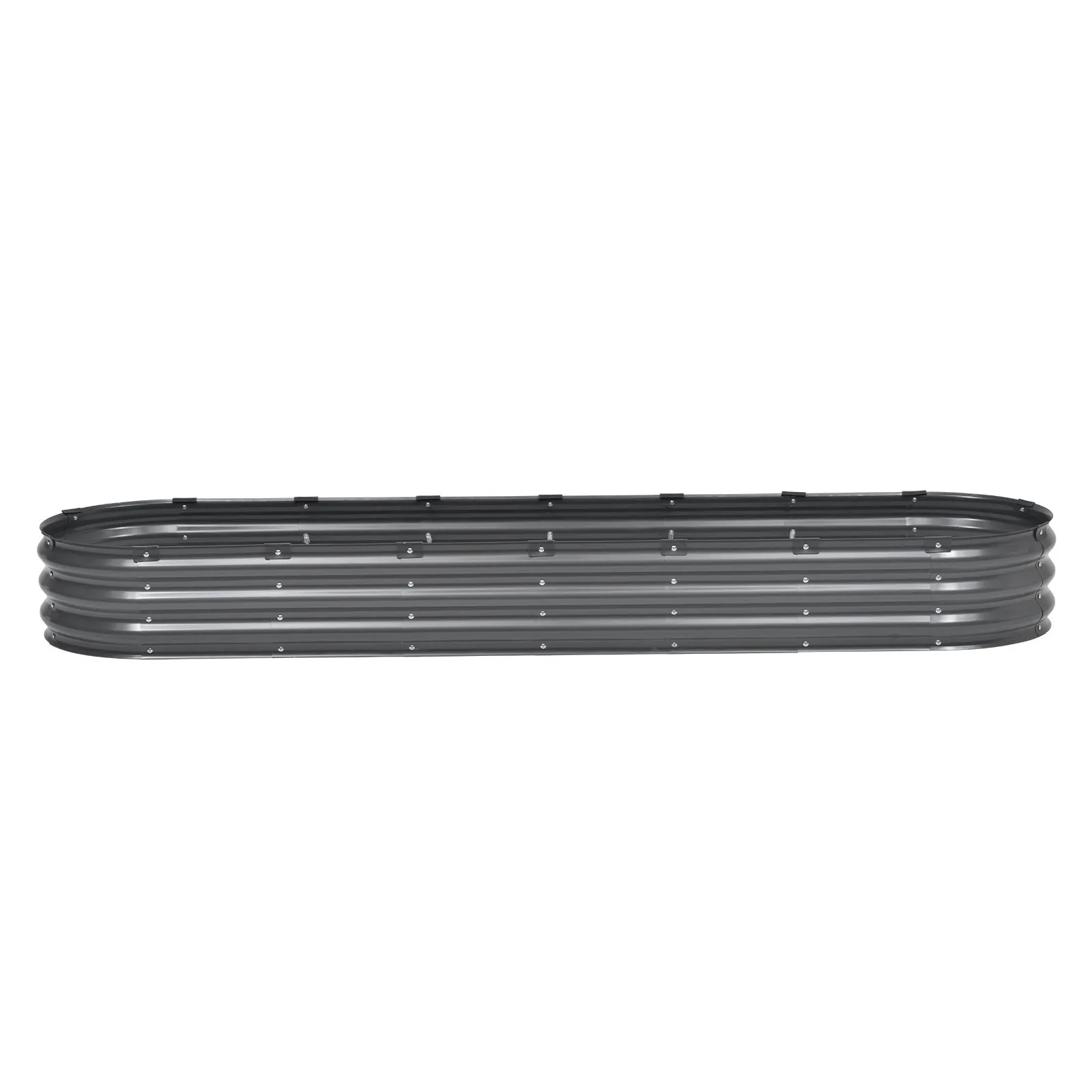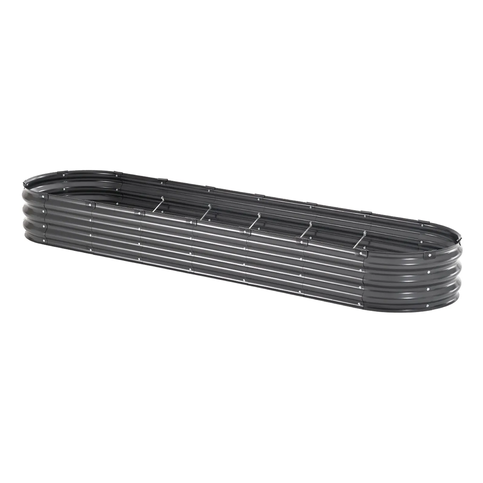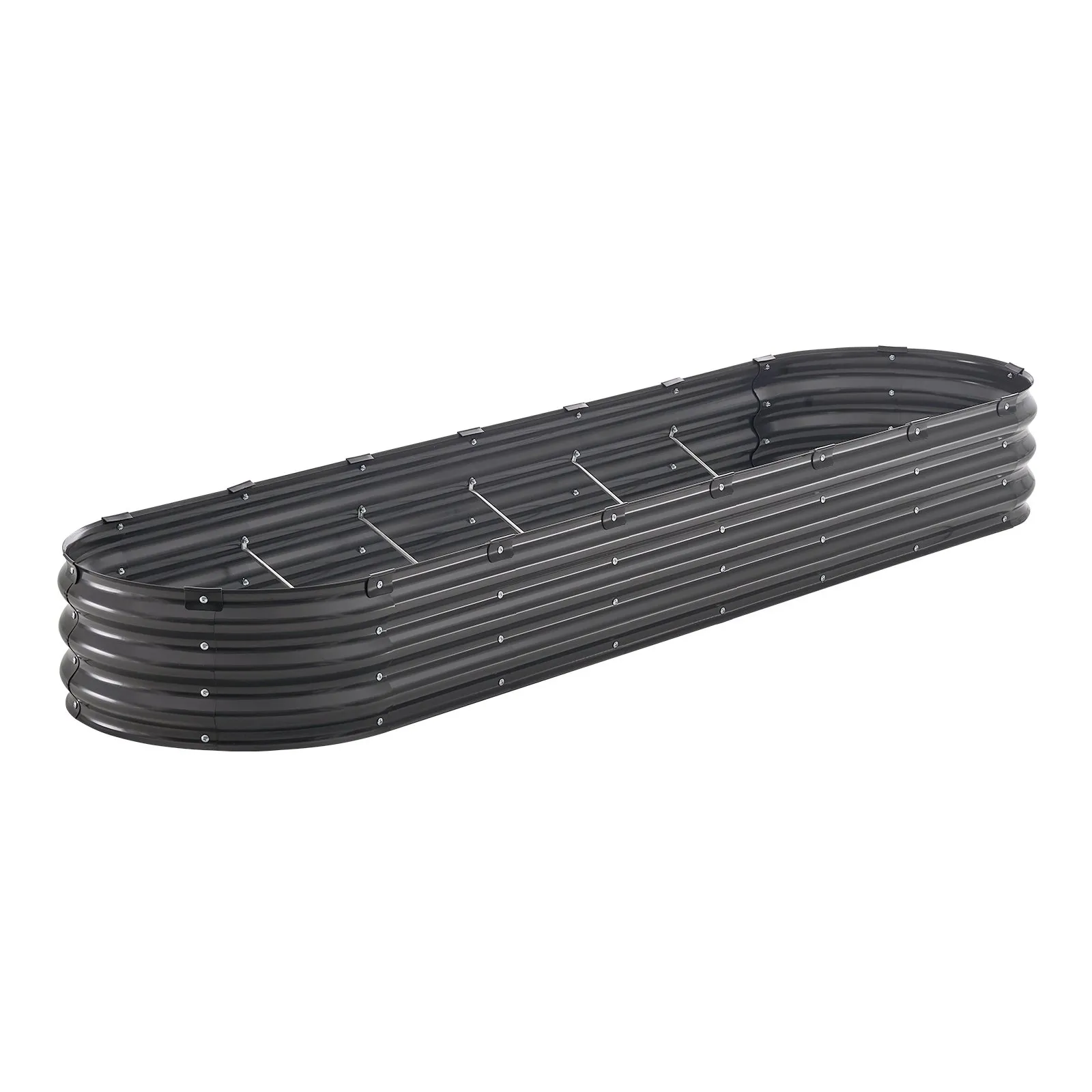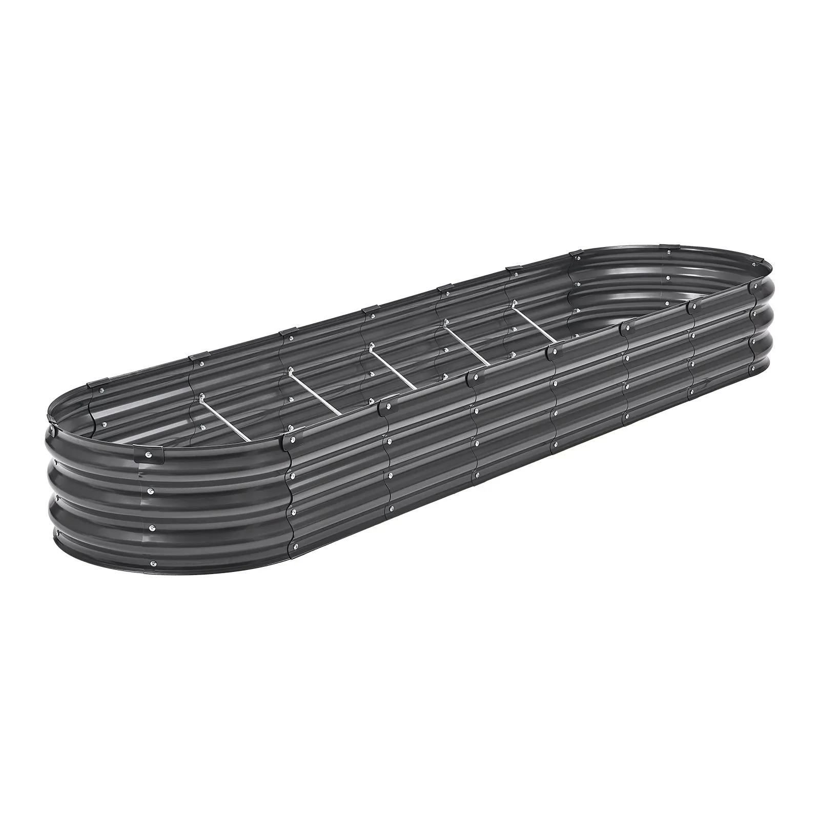 Kovový vyvýšený záhon, 239x60x27cm, pozinkovaný vonkajší kvetináč s otvoreným dnom, oválny zeleninový záhon na pestovanie zeleniny, kvetov, byliniek a sukulentov, tmavosivý
