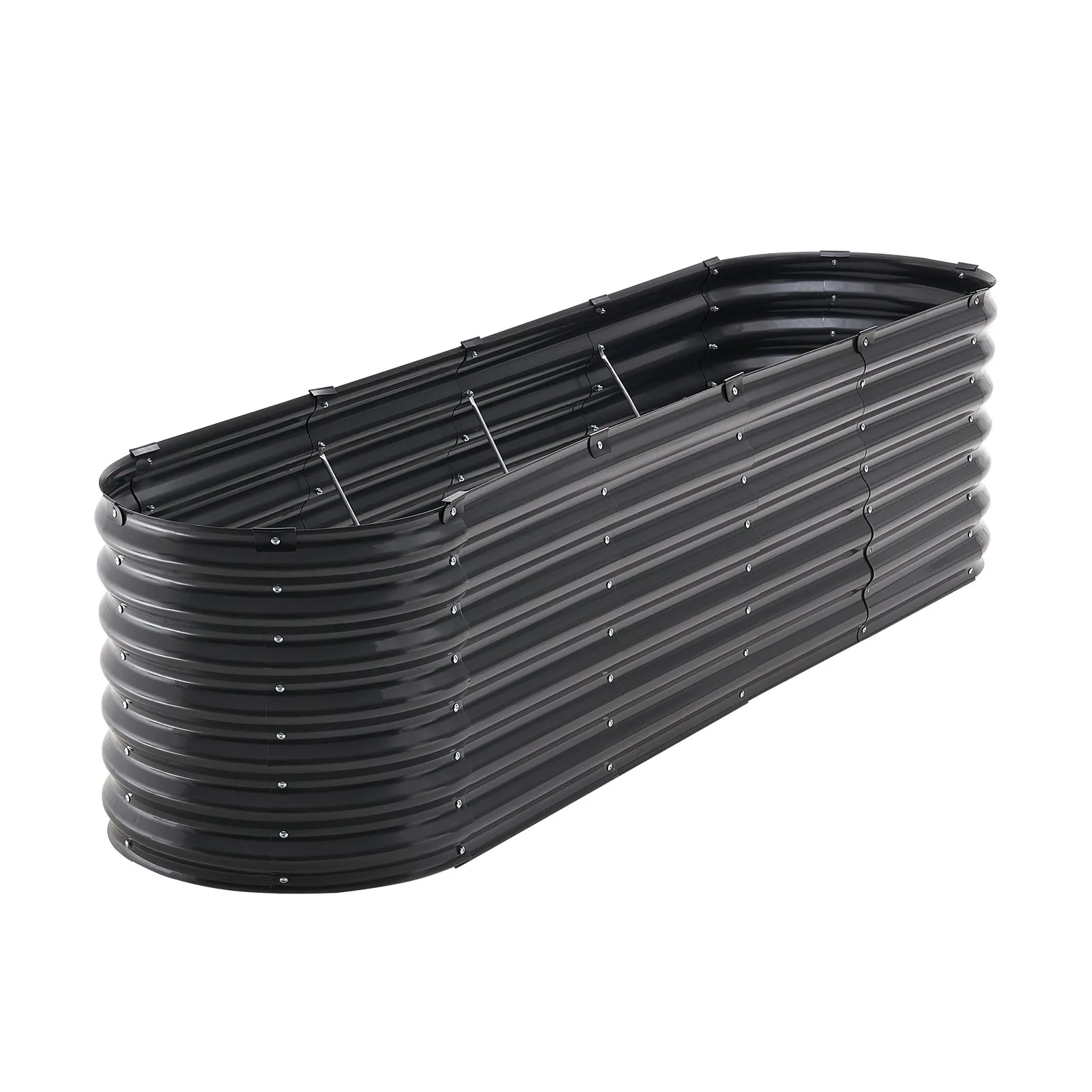 Robustný a odolný: Tento kovový vyvýšený záhradný záhon je vyrobený z kovových bočných panelov s hrúbkou 0,4 mm. Povrch je práškovo lakovaný pozinkovanou oceľou, aby sa zabránilo hrdzi a korózii, a tým sa zabezpečila dlhodobá životnosť v exteriéri. Dvanásť vnútorných výstužných tyčí v tvare X poskytuje extra stabilitu a zabraňuje prevráteniu záhona pri silnom vetre. Pripravte sa s istotou zvládnuť svoj vonkajší priestor!