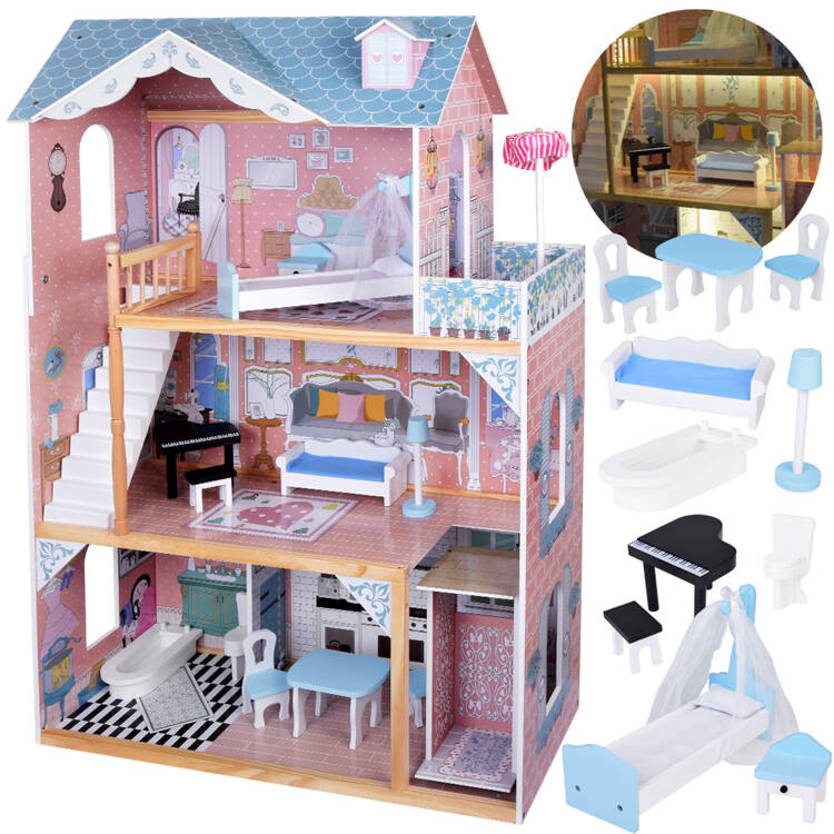 Veľký drevený domček pre bábiky s nábytkom – perfektná zábava na roky!