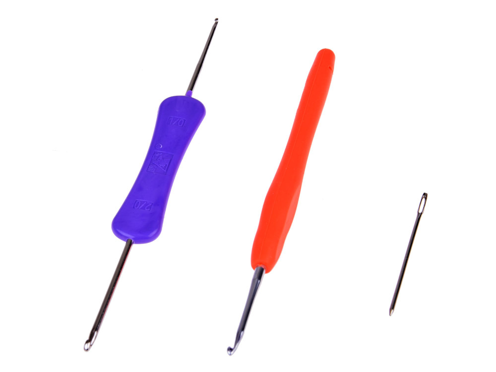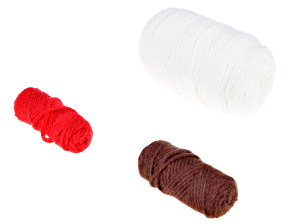 – 3 klbká bavlnenej priadze v ecru, hnedej a červenej farbe,