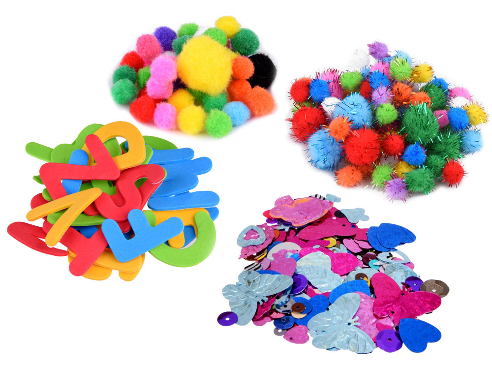 – nadýchané brmbolce v rôznych farbách a veľkostiach