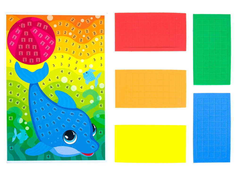 Kreatívna sada pre deti, ktoré majú radi umenie a remeslá. Sada pozostáva z farebného obrázka, ktorý sa dá zlepiť penovými štvorcami a podľa toho upraviť farby a tvary.