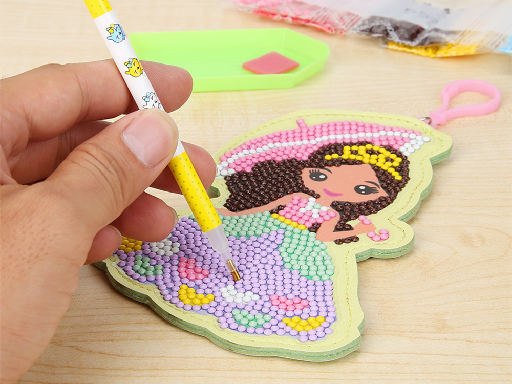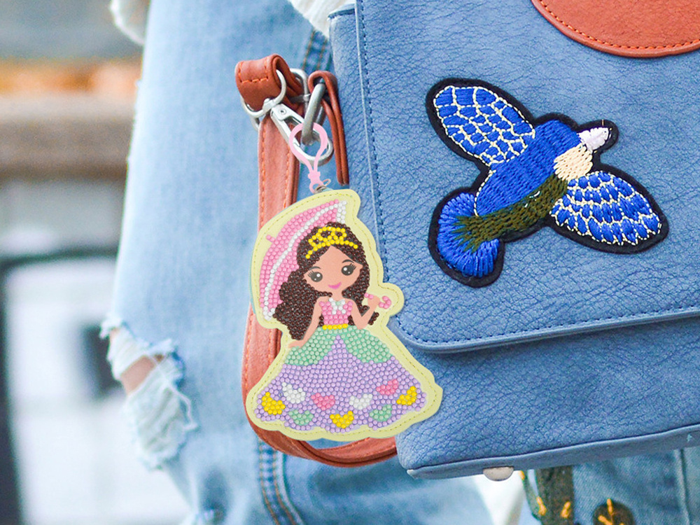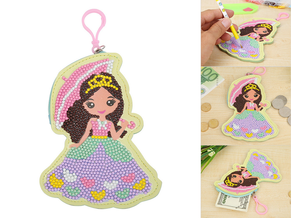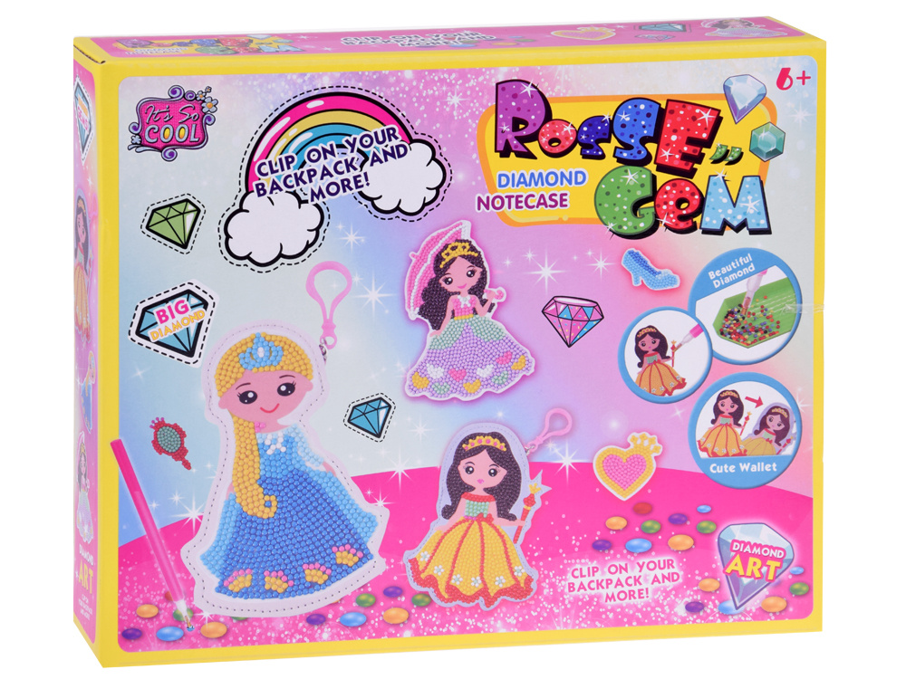 Sada na zdobenie diamantmi vám umožňuje vytvárať krásne dekorácie s použitím rozprávkovo farebných diamantov. Sada obsahuje puzdro/peňaženku so zipsom a príveskom, obrázok nálepky a ozdobné prvky a doplnky. Hra spočíva vo výbere vhodných farieb diamantov a ich prenose na šablónu pomocou lepidla a špeciálneho pera. Po usporiadaní prvkov vytvoríte krásnu, lesklú nálepku, ktorou môžete ozdobiť kľúčenku. Túto farebnú dekoráciu je možné pripevniť na batoh, uložiť na kľúče alebo malé mince.