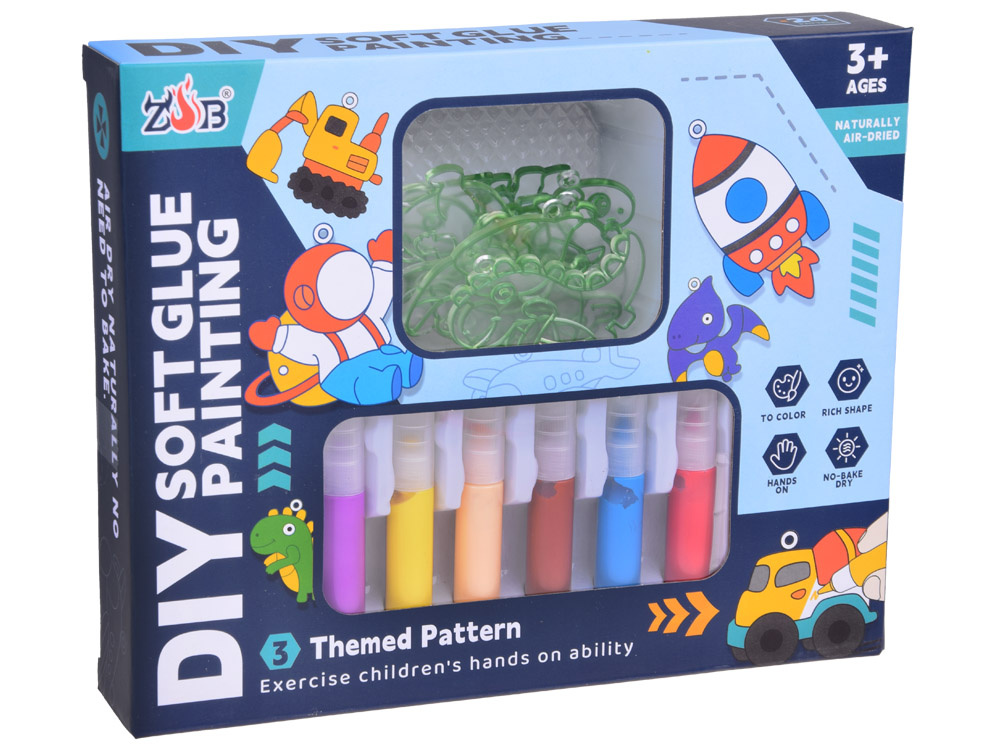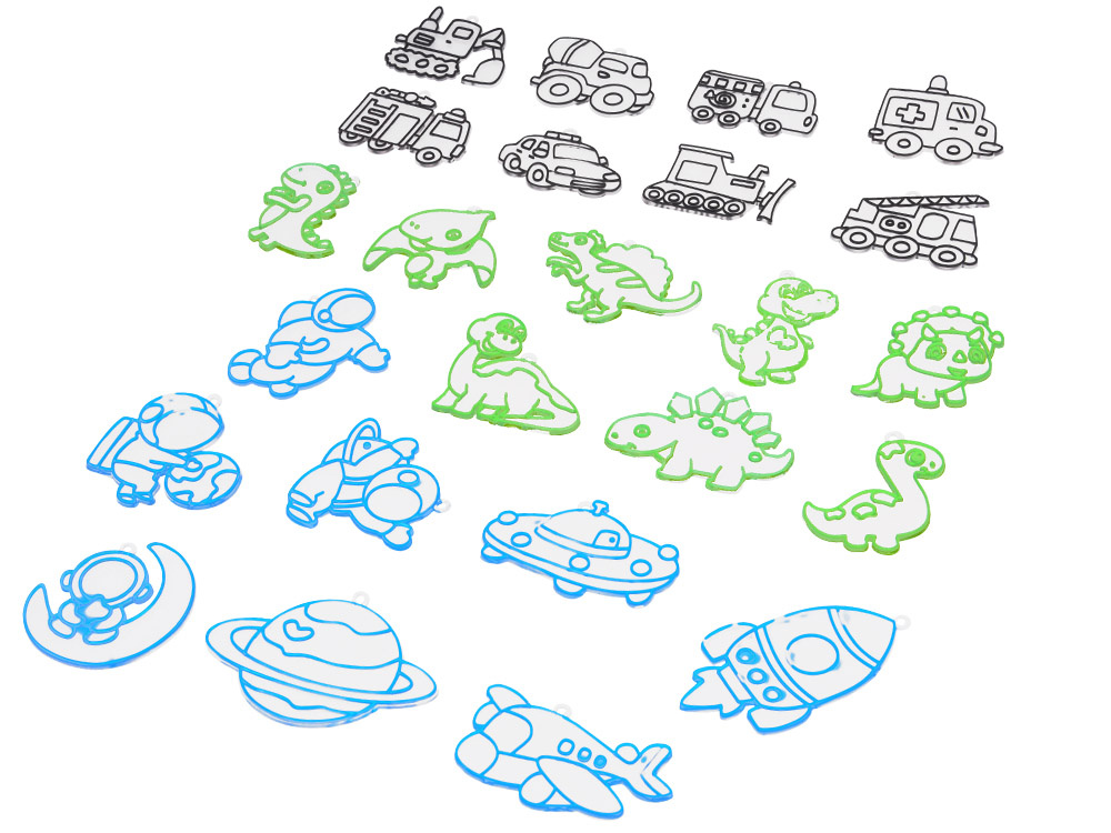 – 24 gumených vzorov z nasledujúcich kategórií: vesmír, praveku, autá