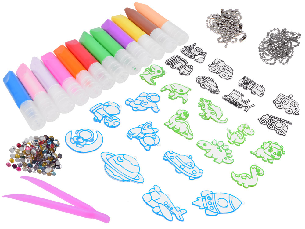 Vytvorte si vlastné personalizované kľúčenky s našou kreatívnou súpravou pre malých umelcov! Prenesie vaše dieťa do sveta vesmíru, praveku alebo motorizmu.