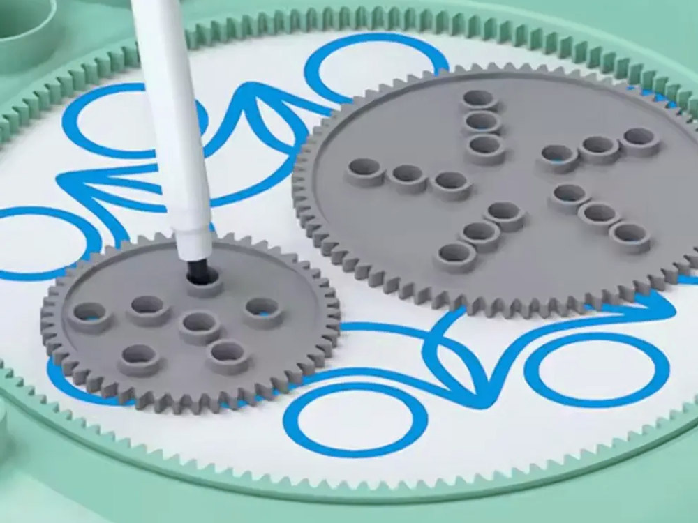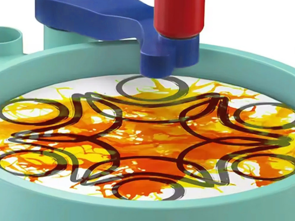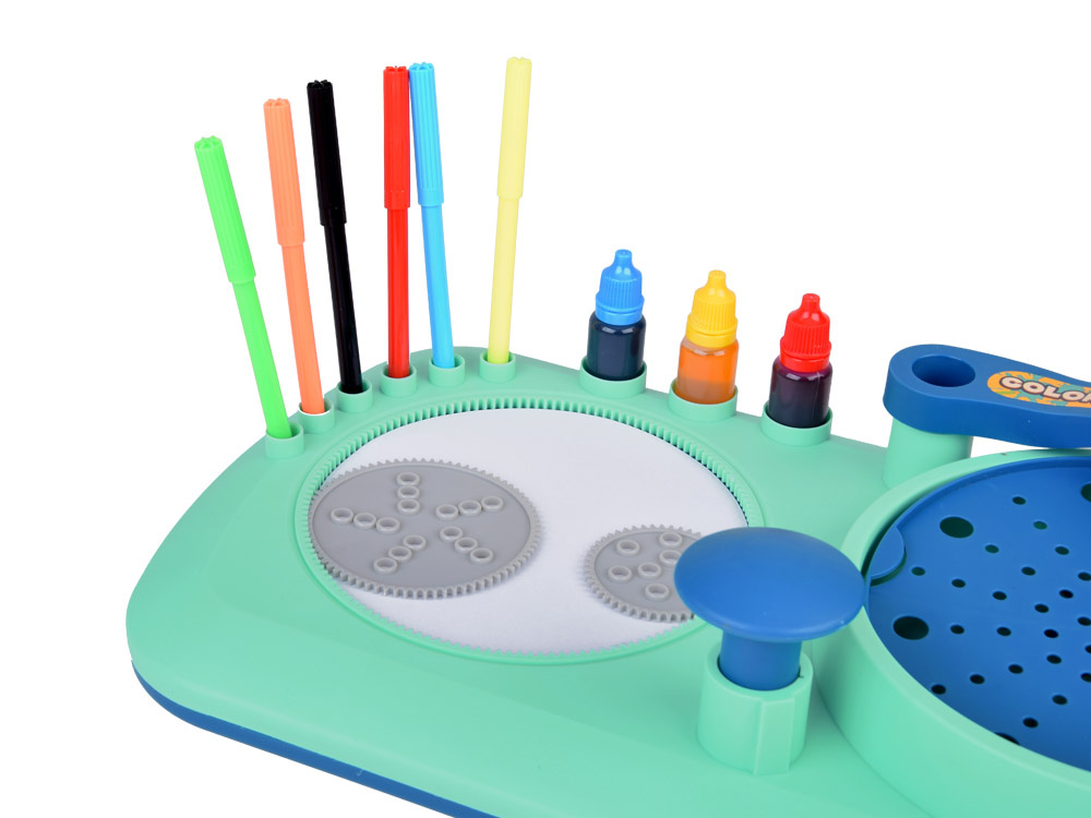 Vlastnosti: Rotačná plošina vám umožňuje vytvárať jedinečné vzory pomocou farieb alebo fixiek – mechanizmus sa aktivuje jednoduchým stlačením tlačidla.