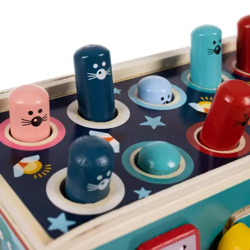 - BEZPEČNÝ – hračka je pre deti bezpečná. Všetky drevené prvky sú dokonale vyleštené a natreté farbami, ktoré sú bezpečné pre deti aj životné prostredie. Prírodná surovina znamená, že aj keď si dieťa vloží hračku do úst, nepríde do styku s umelými materiálmi.