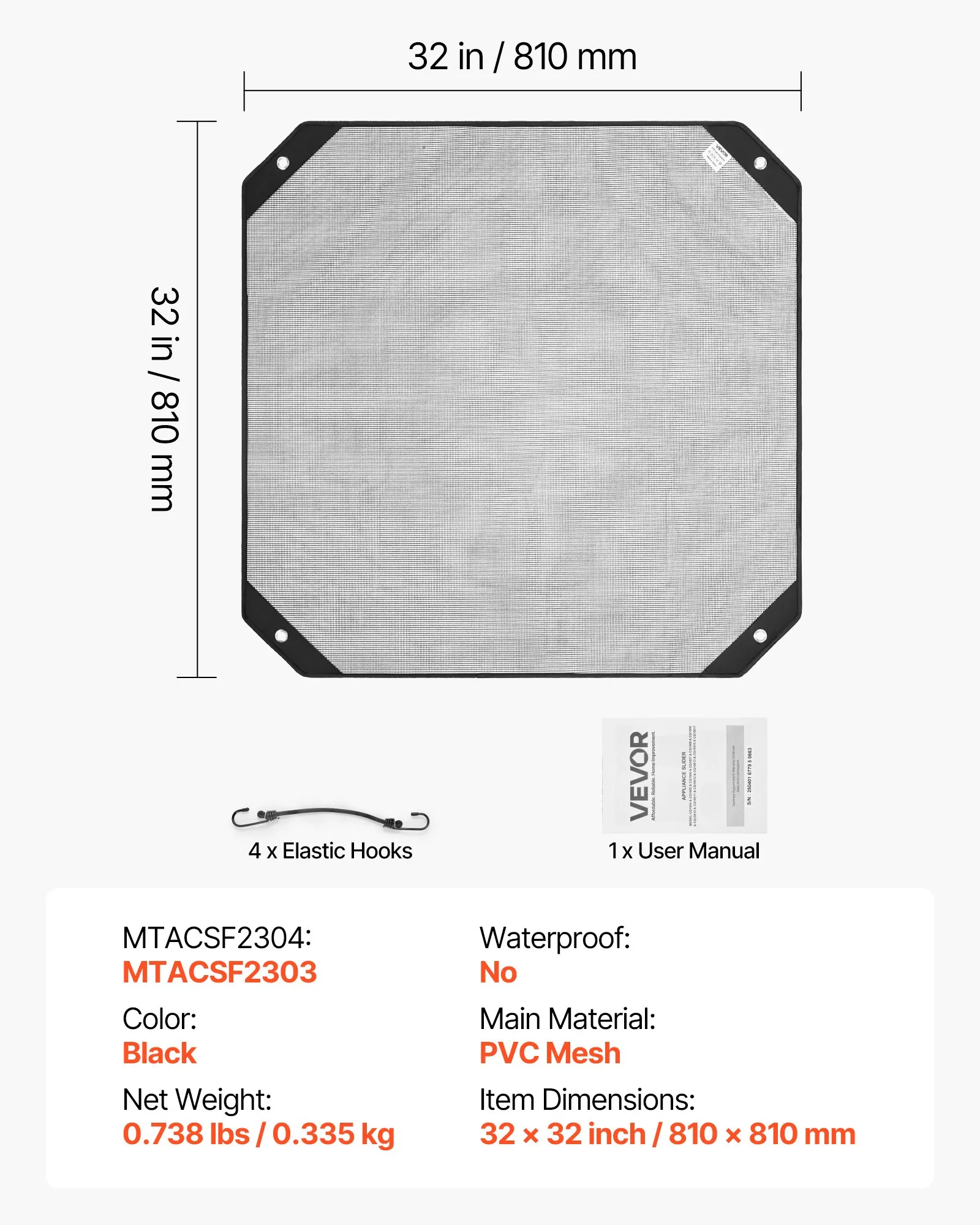 Kryt klimatizácie pre vonkajšie jednotky, 810 x 810 mm, ochranný kryt pre klimatizácie, PVC sieťovaný kryt s elastickými háčikmi, odolný voči roztrhnutiu, na vonkajšie použitie, celoročné použitie, čierny