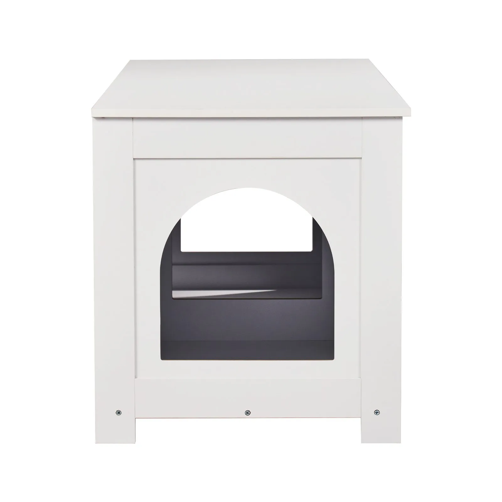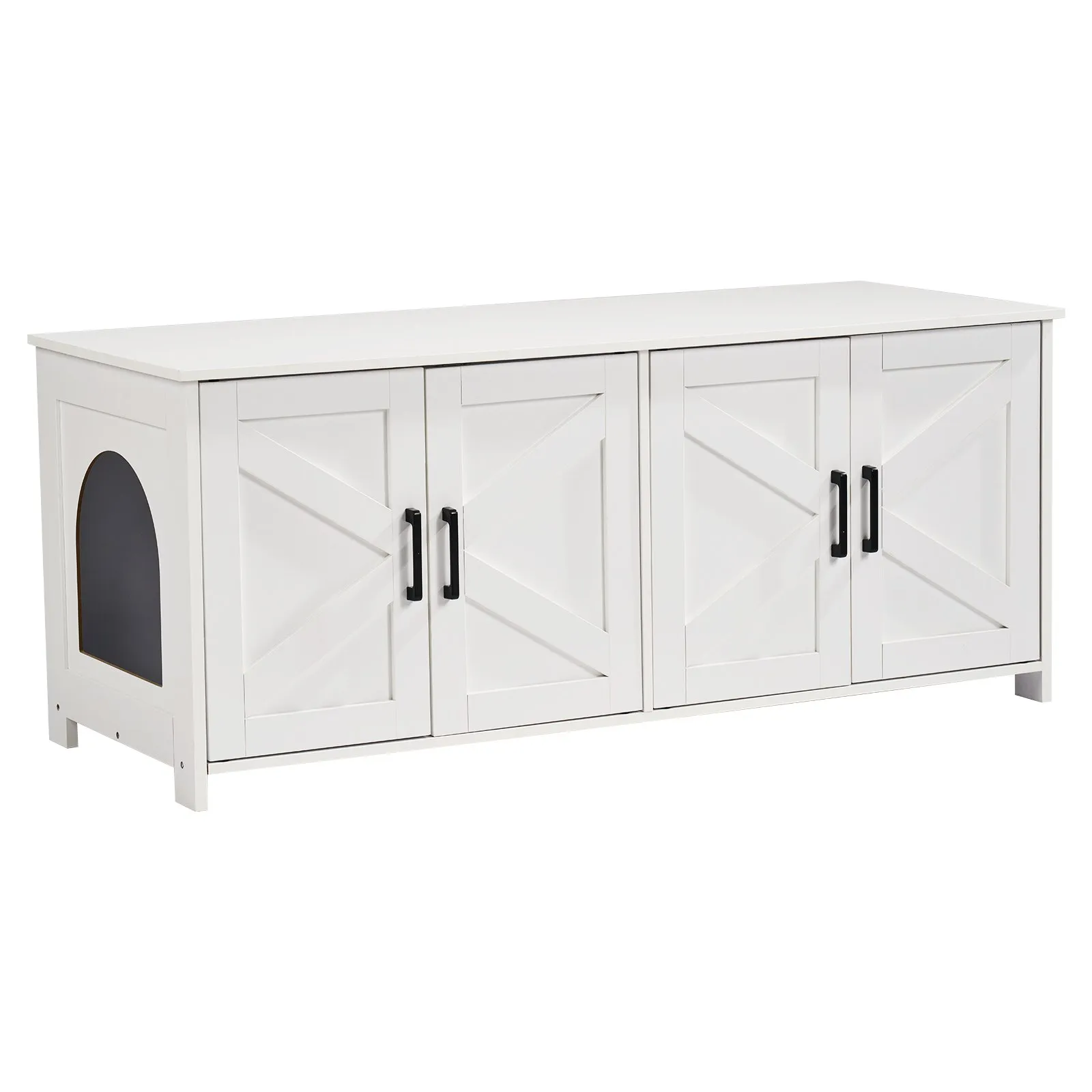 Kryt na mačaciu toaletu pre 2 mačky, skrytý nábytok do mačacej toalety s dvojitými priehradkami, drevená skrinka na mačaciu toaletu sa hodí do väčšiny mačacích toaliet, 119,4 cm D x 47,5 cm Š x 50 cm V, biela