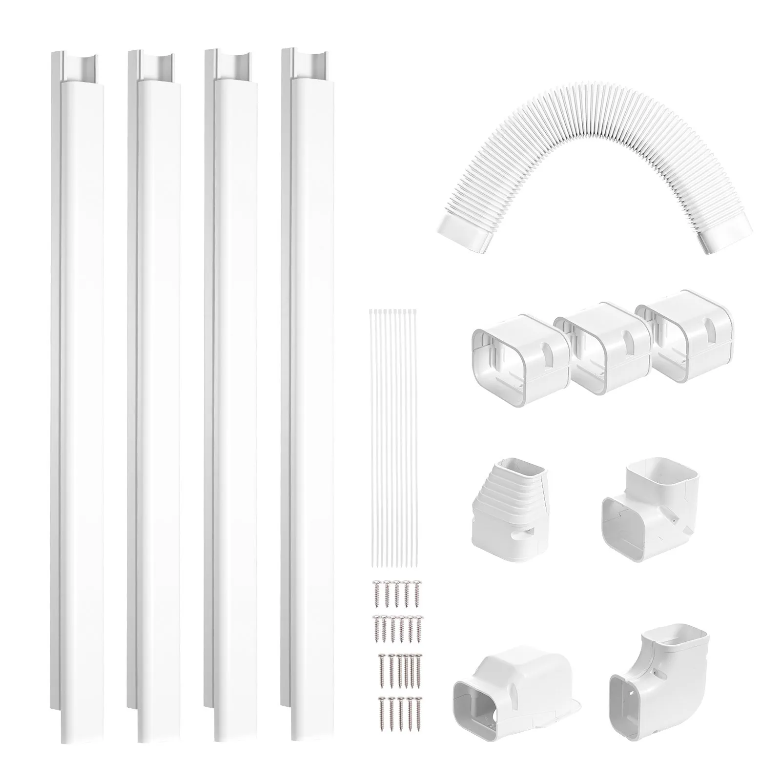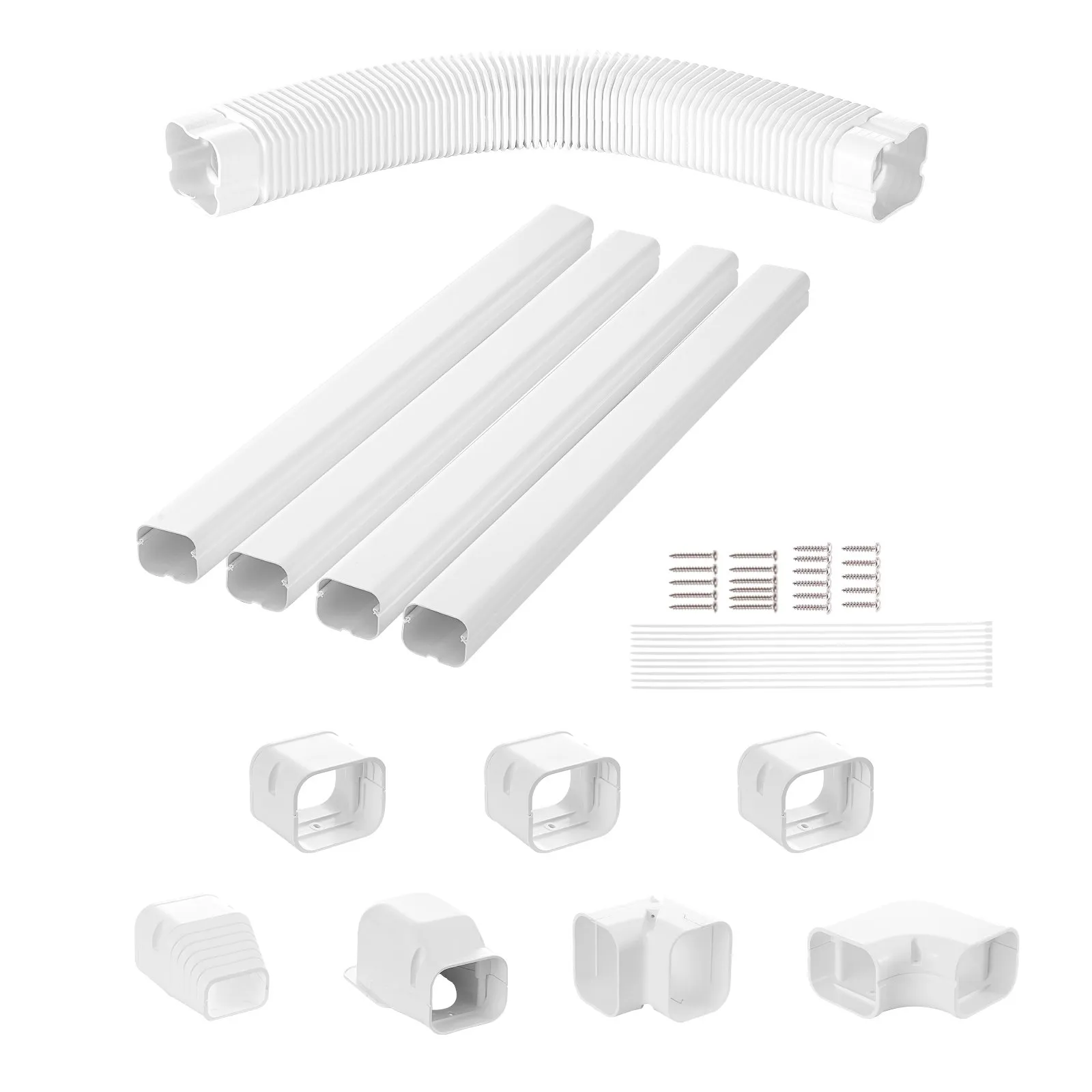 Kryt pre rozdeľovaciu sadu Mini 76,2 mm Š 4830 mm D, dekoratívny PVC kryt na potrubie pre klimatizáciu so 4 rovnými kanálmi a kompletnými komponentmi, natierateľný pre tepelné čerpadlá, biely