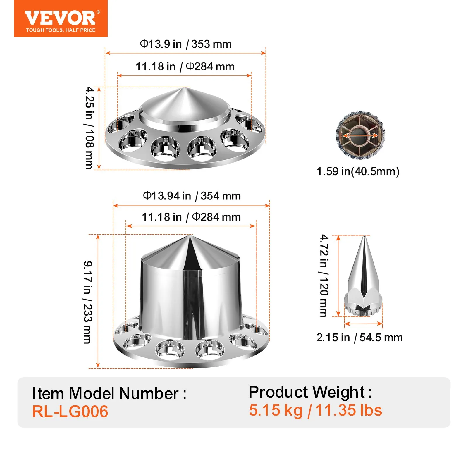 Kompatibilné s rôznymi veľkosťami ráfikov: Kompletná sada krytov nápravy je vhodná pre rôzne veľkosti ráfikov vrátane 10-dierkových ráfikov s rozmermi 20 palcov (508 mm), 22,5 palca (571,5 mm) a 24,5 palca (622,3 mm). To zaisťuje jednoduchú inštaláciu bez ohľadu na typ vozidla.