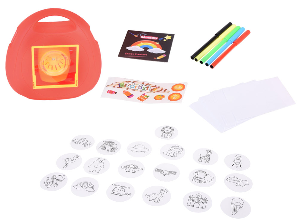 Projektor je skvelou voľbou pre dieťa, ktoré má rado umenie a remeslá. Zabalený v prenosnom puzdre si ho môžete vziať kamkoľvek. Projektor má 20 návrhov na premietanie na papier alebo na stenu, čo určite zaujme každé dieťa. Môže sa použiť na papier alebo premietať na stenu a vytvárať tak rôzne príbehy. Projektor má širokú škálu využití vrátane premietania obrázkov (zvierat, vozidiel) na papier, stôl alebo dokonca na stenu večer. Tento