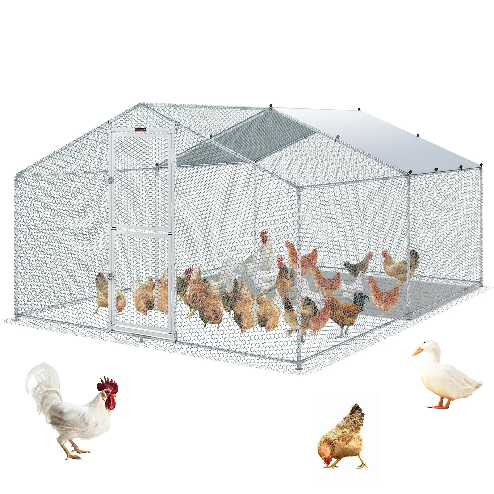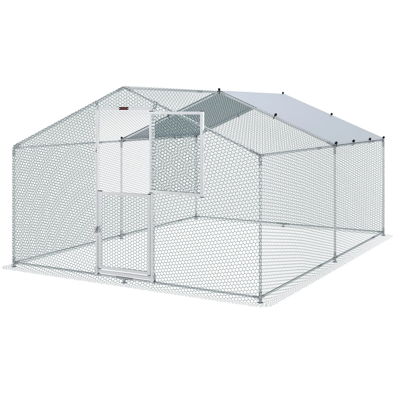 Kurník, 4 x 3 x 2 m, kurník s voľným výbehom a strechou proti slnku, PE plachta, oceľový kurník pre malé zvieratá, strecha kurníka, hydináreň, klietka pre sliepky, kačice, husi, králiky atď.