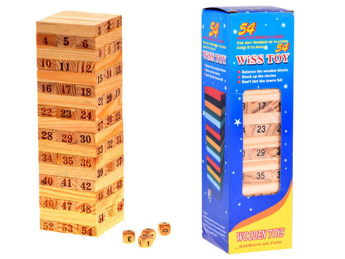Hra pozostáva z 54 drevených kock, ktoré musia byť usporiadané do veže. Tri kocky na vrstvu. Fantastický spôsob, ako stráviť veľa radostných chvíľ s priateľmi alebo rodinou. Zábava zaručená!