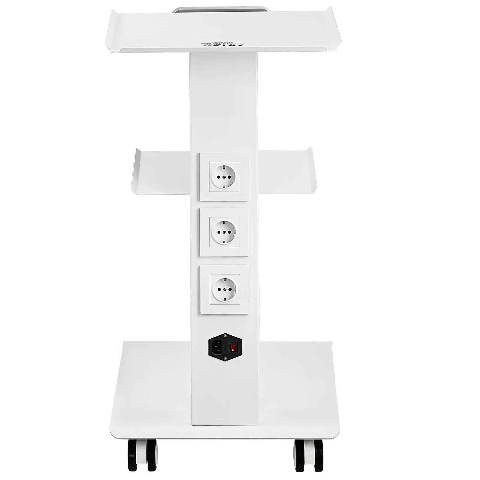 S integrovanou zásuvkou: Tento mobilný vozík je vybavený vstavanou bočnou zásuvkou a nezávislými zásuvkami vhodnými na súčasné používanie viacerých zariadení. Tento laboratórny vozík je vybavený dlhým napájacím káblom, ktorý umožňuje jednoduchý prístup k ťažko dostupným miestam.