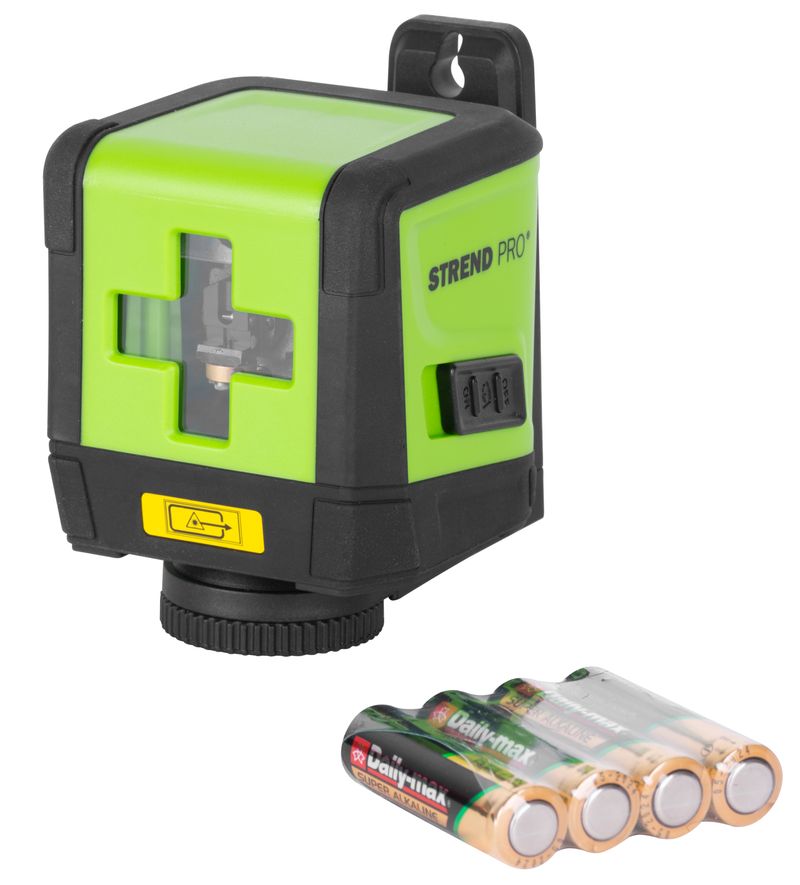Krížový laser Strend Pro TPLL01D so zelenou laserovou diódou nemeckej značky OSRAM a s magnetickým držiakom v balení.