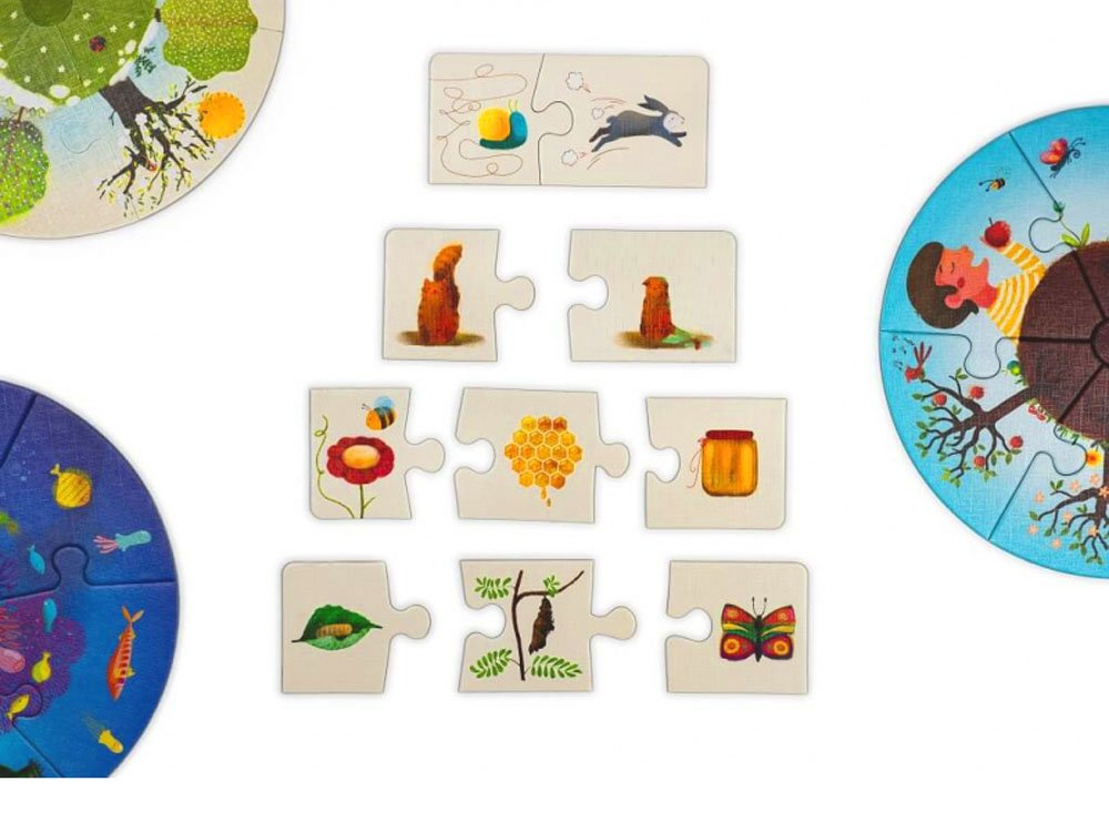Vzdelávacia hra „Logika“ (vo veku 3 – 7 rokov) je ideálna pre zvedavé predškoláky, ktorí milujú objavovanie tajomstiev prírody, skladanie puzzle a riešenie hádaniek. Sada obsahuje osem kruhových puzzle so 6 dielikmi, ktoré deťom predstavia ročné obdobia a rôzne druhy zvierat, a osem dvojdielnych a trojdielnych puzzle, ktoré ilustrujú protiklady a vzťahy príčiny a následku.