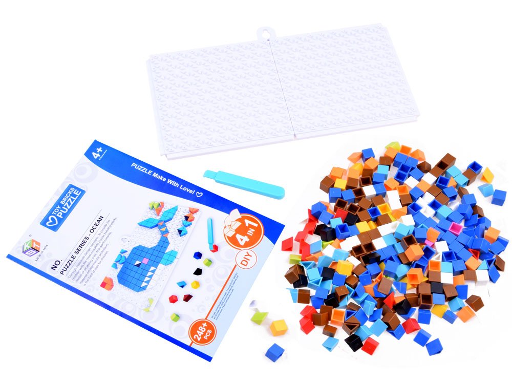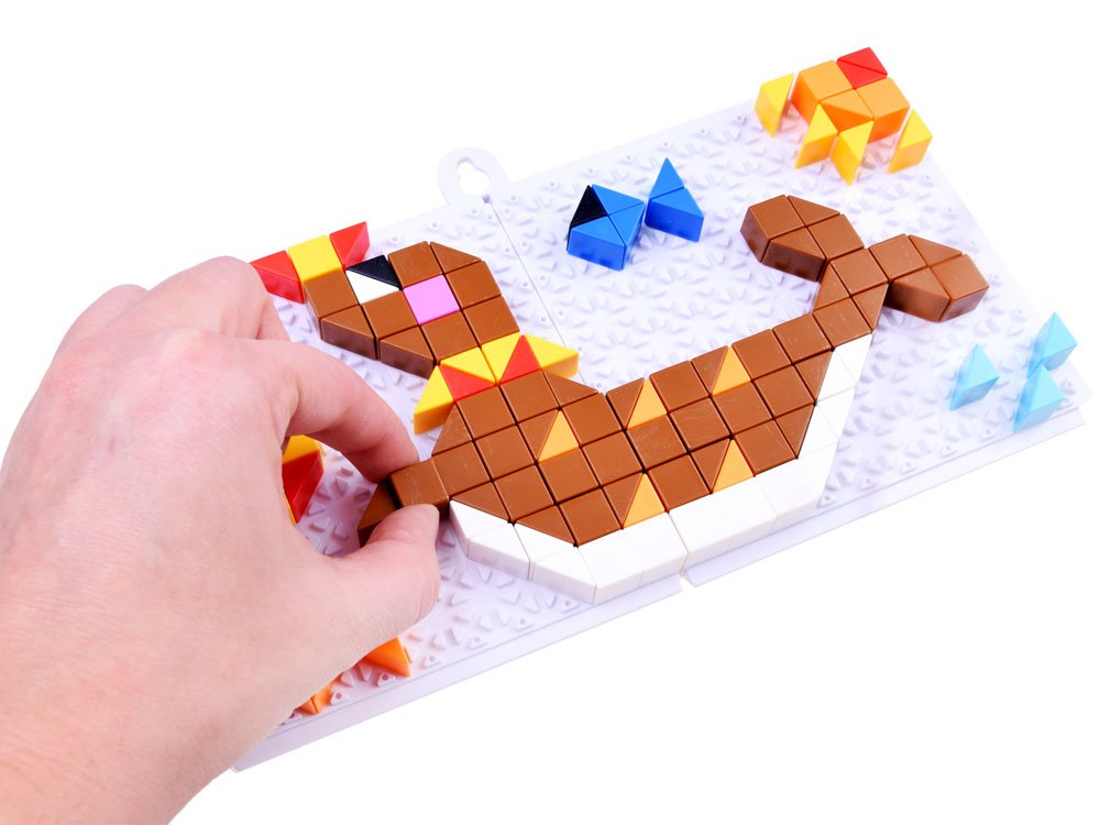 Táto jedinečná hračka kombinuje učenie a zábavu a poskytuje nekonečné hodiny kreatívnej hry. Sada sa skladá z plastových blokov , ktoré je možné usporiadať na špeciálnej doske a vytvoriť tak farebné mozaiky.