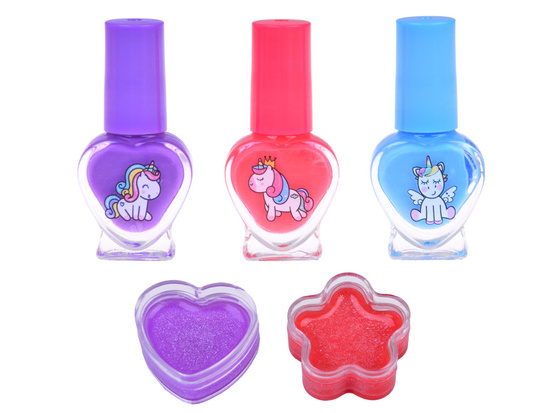 Bohaté príslušenstvo: Kufrík obsahuje rôzne kozmetické produkty, ako sú očné tiene, lesky na pery, laky na nechty, štetce a aplikátory. Všetky produkty sú bezpečné pre deti a ľahko sa umývajú.
