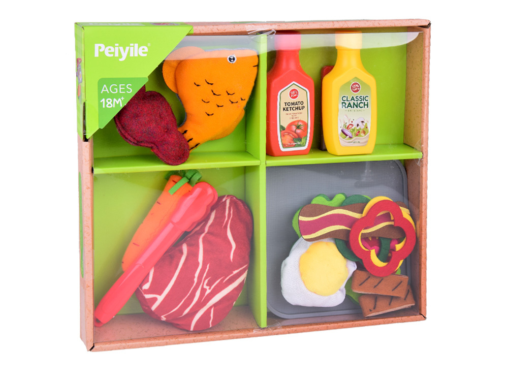 Všetky prvky sú vyrobené z mäkkého, pre deti bezpečného materiálu, ktorý verne reprodukuje tvary a farby skutočných potravín. Vďaka realistickým rozmerom sa deti môžu cítiť, akoby skutočne varili!