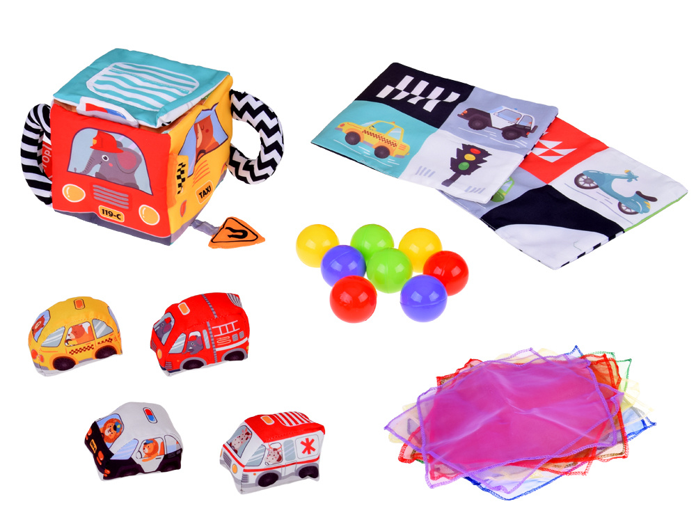 - Mäkké autíčka: látkové autíčka predstavujúce vozidlá taxíkov, hasičov, polície a záchrannej služby vydávajú pri stlačení jemný zvuk, ktorý stimuluje sluch.