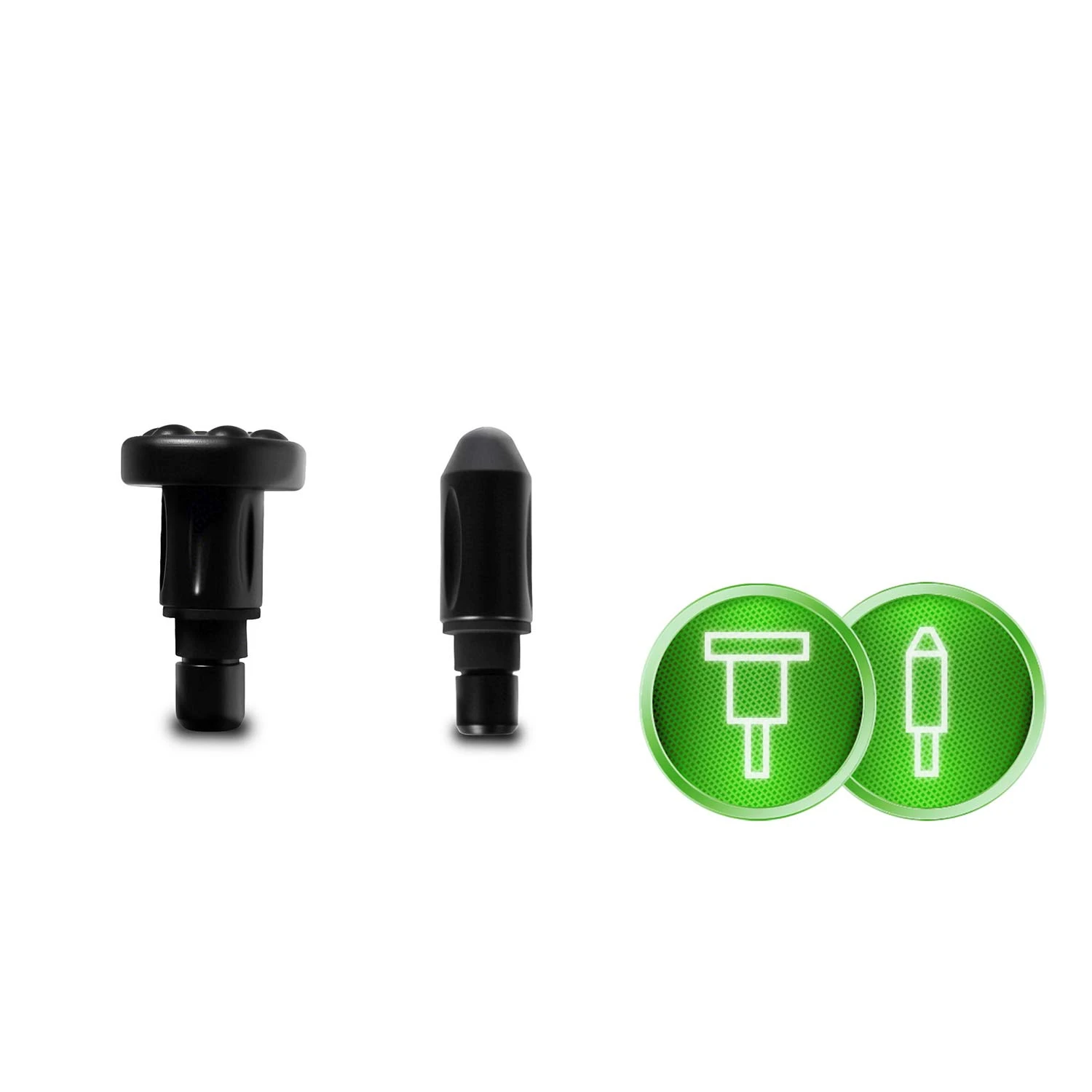 ✅E – hubovitá hlavica: na masáž citlivých častí tela – napr. ramien, krku, jemnejších svalov; jemná, tlmiaca.