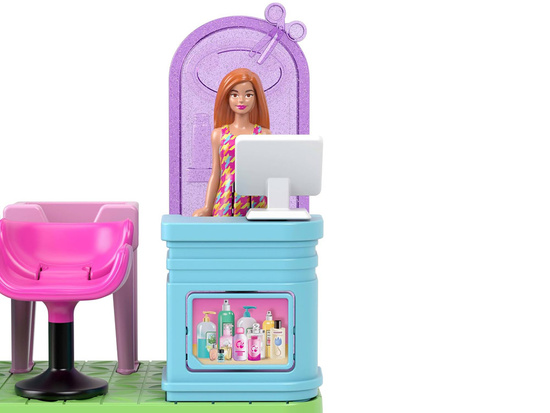 Sada obsahuje štylizovanú minifigúrku Barbie s výškou približne 3,5 cm a plne vybavený priestor pre kaderníctvo. Nájdete v nej: