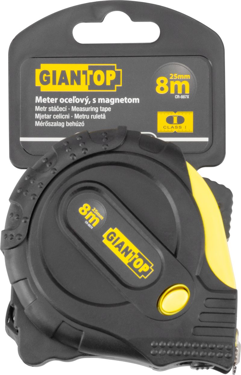 Zvinovací meter GIANT by nemal chýbať vo výbave profesionálnych remeselníkov, ale aj domácich kutilov. Tento komfortný meter z veľmi pružnej ocele je vybavený praktickým klipom na opasok a pútkom na ruku. Meter disponuje brzdou. Puzdro metra je vyrobené z pevného plastu. Má kompaktné telo a posuvný háčik. Disponuje magnetom. Dĺžka je 8 m a šírka pásu je 26 mm. Je vhodný pre vnútorné aj vonkajšie meranie.