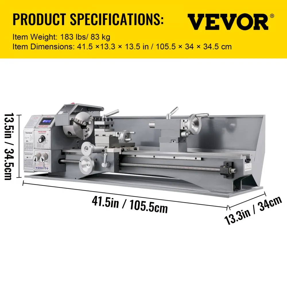 • Plynulá regulácia otáčok: Mini kovový sústruh je poháňaný bezkartáčovým motorom s výkonom 750 W. Variabilná rýchlosť (ot./min.): 50 – 3 000 ± 10 %. Kužeľ vretena: MK5. LED displej jasne zobrazuje rýchlosť pre presnú prácu. Mäkký štart, prepínač pre otáčanie vretena v smere alebo proti smeru hodinových ručičiek. Obsluha je možná manuálne alebo s nastaviteľným automatickým posuvom.