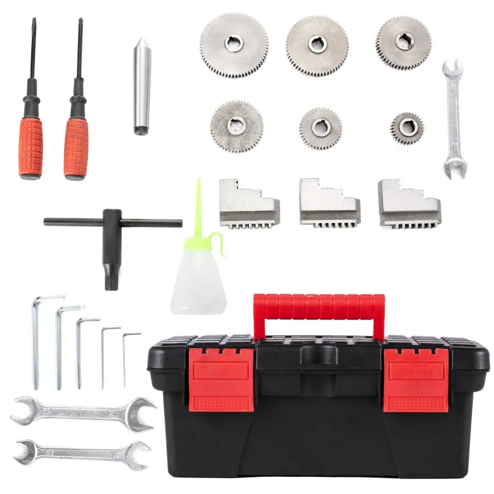 • Kompaktný držiak nástrojov: Držiak nástrojov mini sústruhu sa dá rýchlo vymeniť a umožňuje rezanie vnútorných a vonkajších plôch, ako aj šikmých plôch. To sa dosiahne nastavením uhla držiaka nástrojov a podpery, zatiaľ čo rezné nástroje sa dajú voľne pohybovať pomocou posuvnej tyče. Tepelne kalená vodiaca skrutka sa dá prepínať medzi tromi rýchlosťami otáčaním dvoch rukovätí pod otočným spínačom.