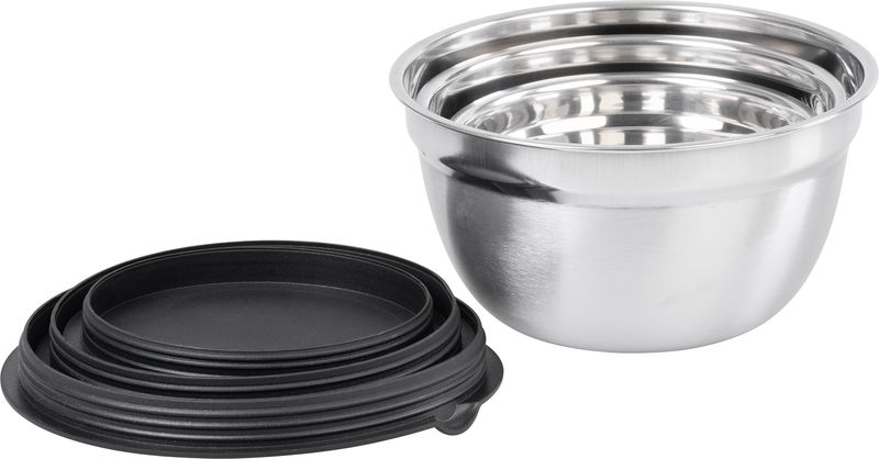 Sada troch misiek MagicHome v nerezovom prevedení je praktickým pomocníkom v kuchyni. Sada obsahuje 3 ks misiek s priemermi 14, 16 a 18 cm. Jednoduchý a štýlový dizajn, ktorý sa hodí do akejkoľvek kuchyne. Sú odolné voči korózii, zachovávajú si svoj lesk aj po dlhodobom používaní. Disponujú praktickým vekom na uzatváranie.