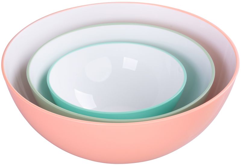 Sada šalátových misiek MagicHome v decentných pudrových farbách obsahuje 3 rôzne misky s objemom 0,6/1,5/3 litrov. Sú vhodné do mikrovlnky aj umývačky riadu.