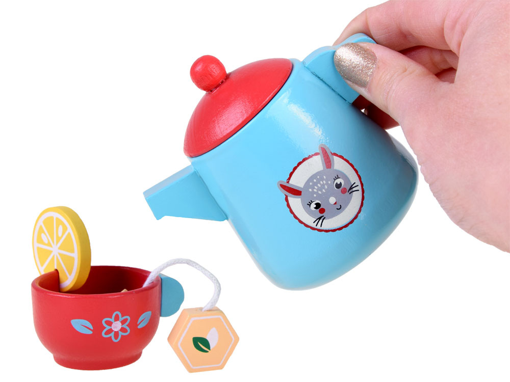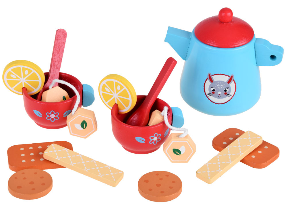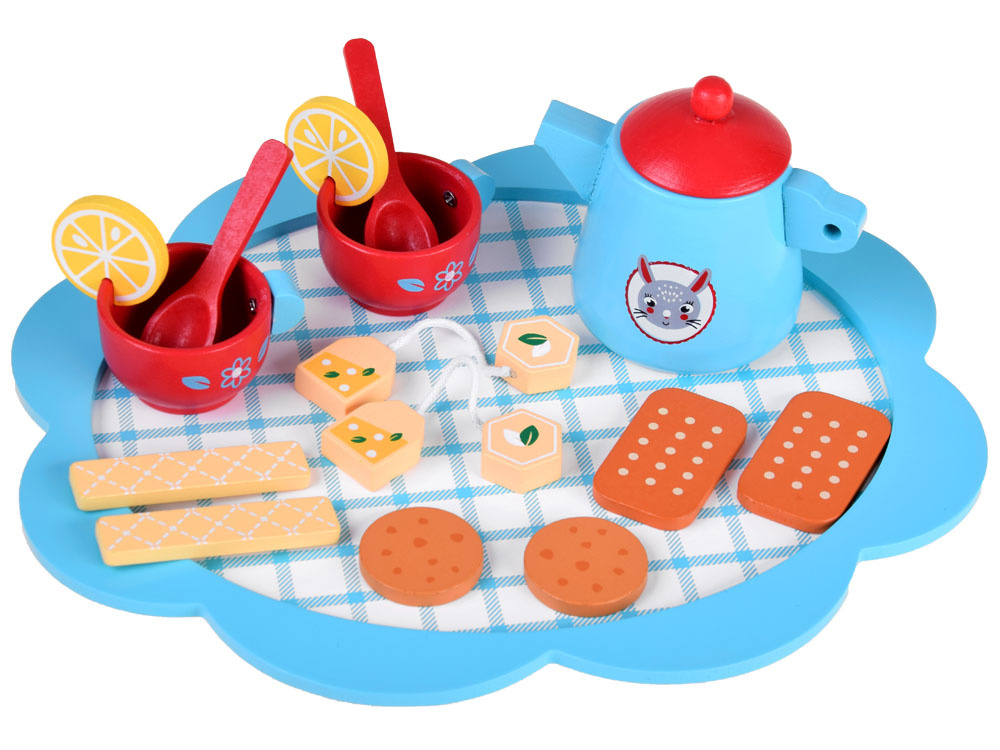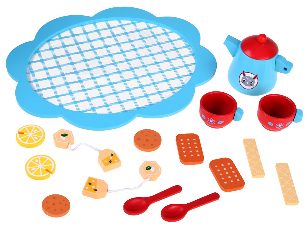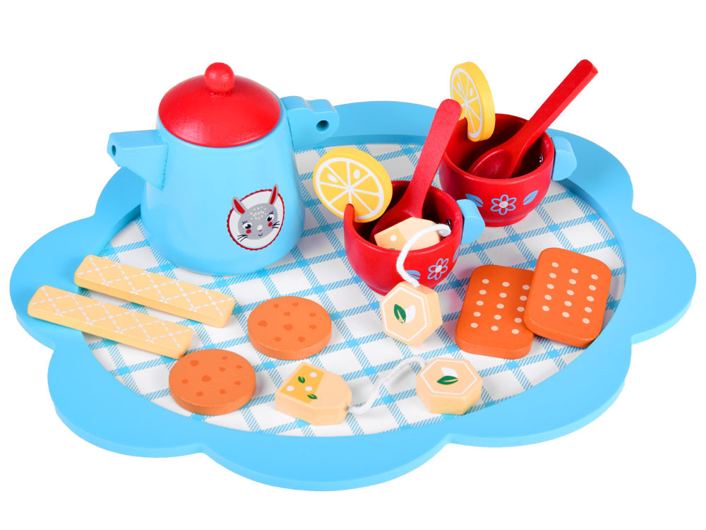 Kompletná sada s príslušenstvom, ako sú drevené krekry, sušienky a plátky citróna na čaj, robí hru ešte realistickejšou a pútavejšou. Deti môžu napodobňovať organizovanie čajových večierkov, servírovanie občerstvenia a prípravu šálok s polevami.