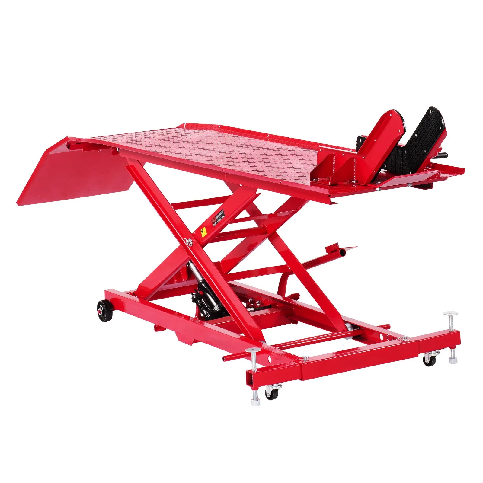 Motocyklový zdvihák Hydraulický zdvihák na motocykle (max. výška zdvihu 787 mm) Zdvíhací stojan s posuvným držiakom, stojan na opravu bicyklov (nosnosť 453,59 kg) s bezpečnostným zámkom pre terénne vozidlá a motocykel