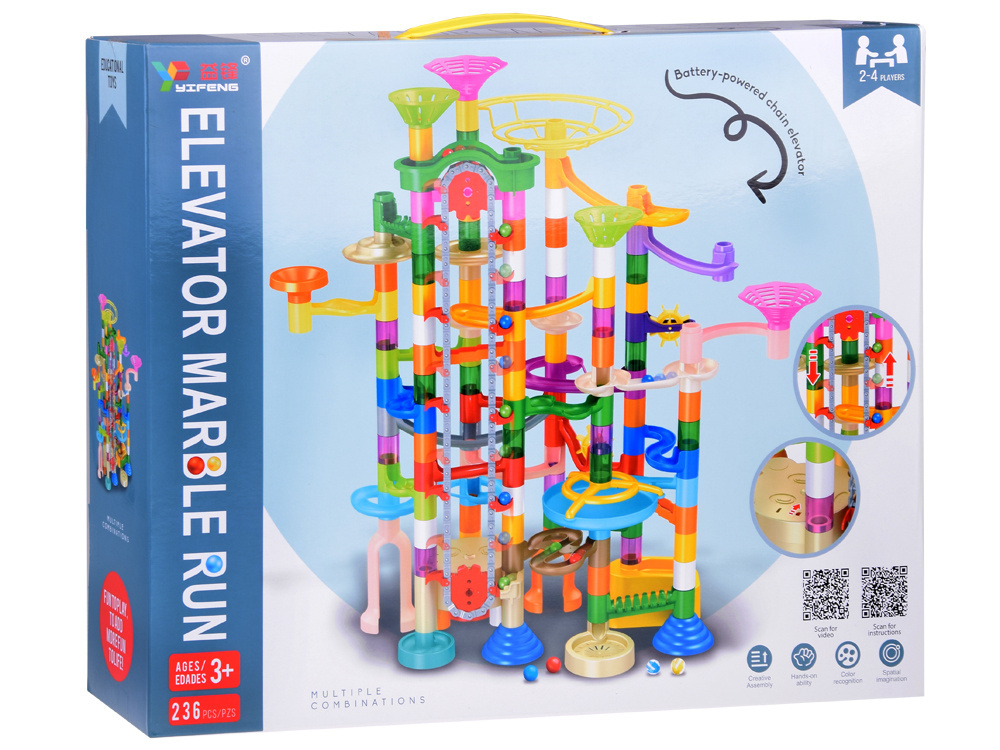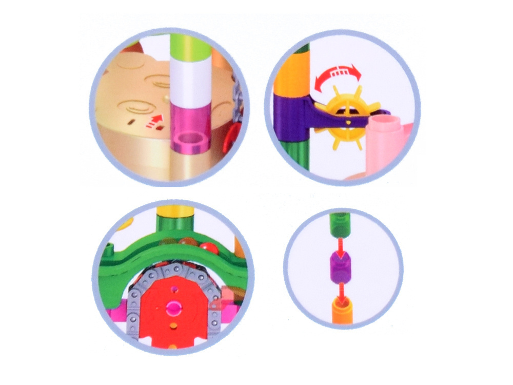 Mramorová dráha je napájaná z batérií , čo pridáva ďalší interaktívny prvok. Súprava obsahuje mechanický prvok, ako napríklad „elektrický výťah “, ktorý automaticky zdvíha guľôčky na začiatok dráhy. To umožňuje deťom sledovať, ako guľôčky plynulo prechádzajú celou dráhou a vracajú sa na začiatok, aby sa opäť vydali na svoju cestu.