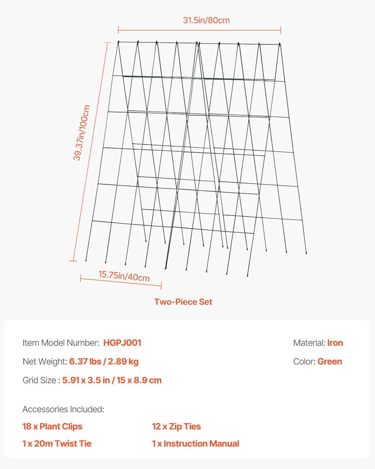 Všestranné použitie: Táto kovová mriežka na rastliny je ideálna pre farmy, záhrady a terasy a poskytuje silnú oporu pre uhorky, paradajky, hrach, cuketu alebo iné popínavé rastliny.