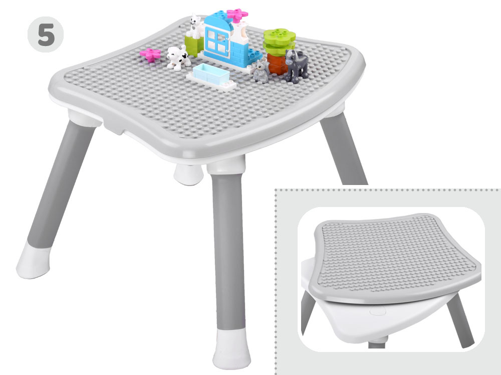 Rozkladacia doska stola s výstupkami je ideálna na hranie s veľkými kockami, ako je Duplo.  Tento modulárny kus nábytku rastie s dieťaťom, vďaka čomu je perfektnou voľbou pre každé dieťatko.