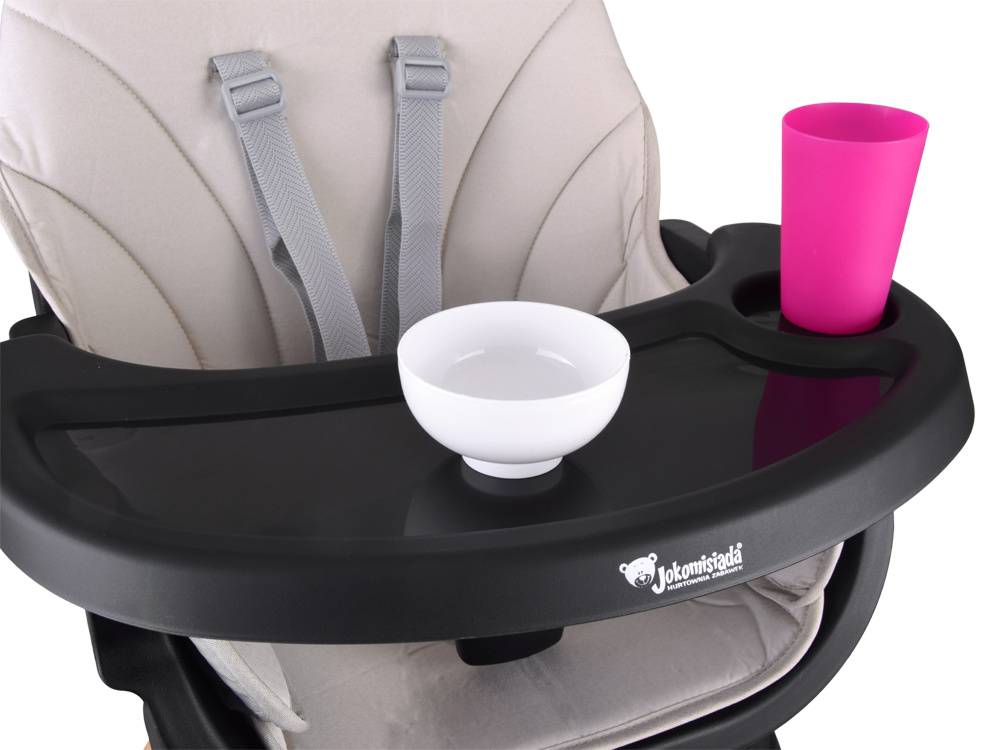 - Pohodlná a stabilná stolička na kŕmenie s nastaviteľným podnosom a bezpečnostným pásom zaisťuje pohodlie pre dieťa aj rodiča. Podnos je tvarovaný, odnímateľný a ľahko sa čistí – stačí ho opláchnuť pod tečúcou vodou alebo vložiť do umývačky riadu. Pod stoličkou sa nachádza aj praktický košík na drobnosti užitočné počas kŕmenia, ako sú látkové plienky, vlhčené obrúsky alebo obľúbená hračka.