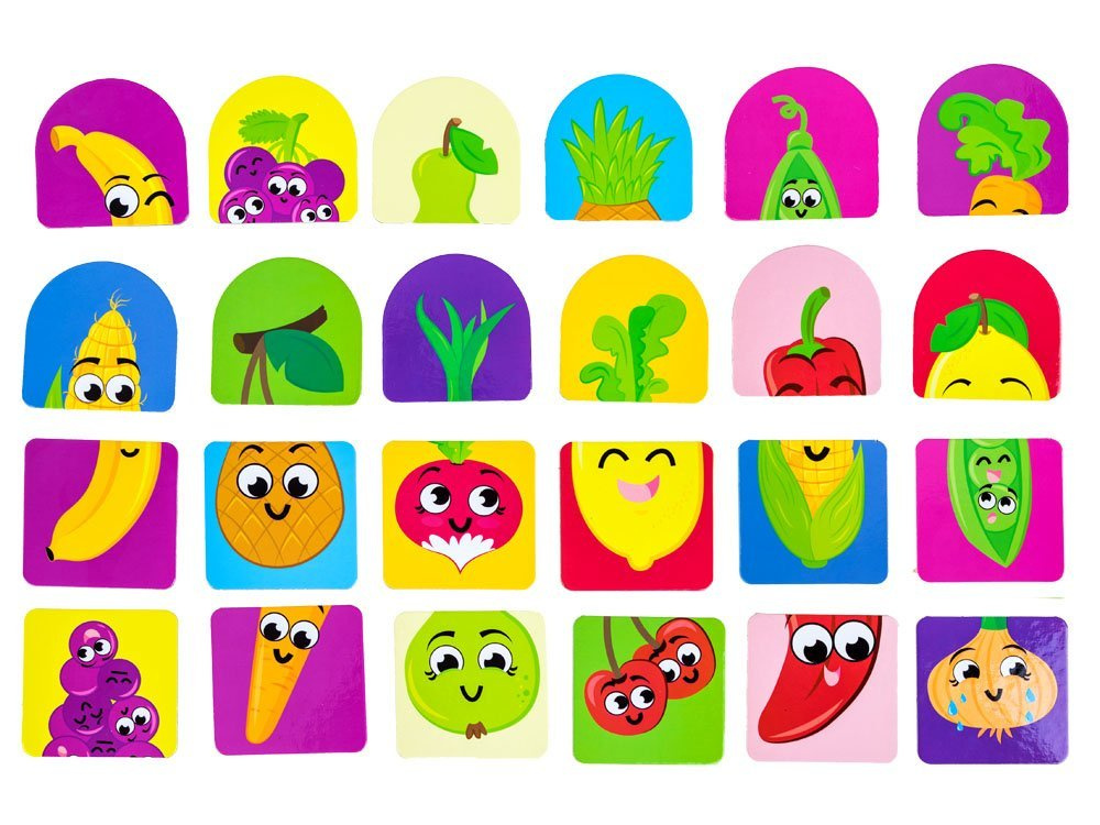HORNÁ A DOLOVÁ ČASŤ: Ovocie a zelenina je fantastická hra pre batoľatá a ich rodičov. Zábava spočíva v usporiadaní obrázkov usmievavého ovocia a zeleniny tak, aby sa horná časť obrázka zhodovala so spodnou časťou.
