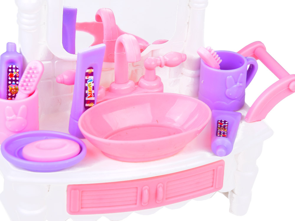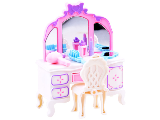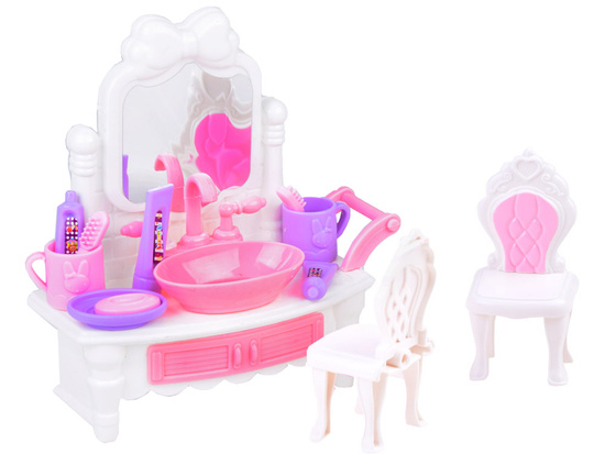 Sada plastového nábytku do domčeka pre bábiky vám umožní dokonale naplánovať miestnosti ako spálňu a kúpeľňu. Sada v ružovo-bielej farebnej schéme určite rozžiari každú miestnosť plastovým nábytkom v elegantnom štýle a farebnej schéme.