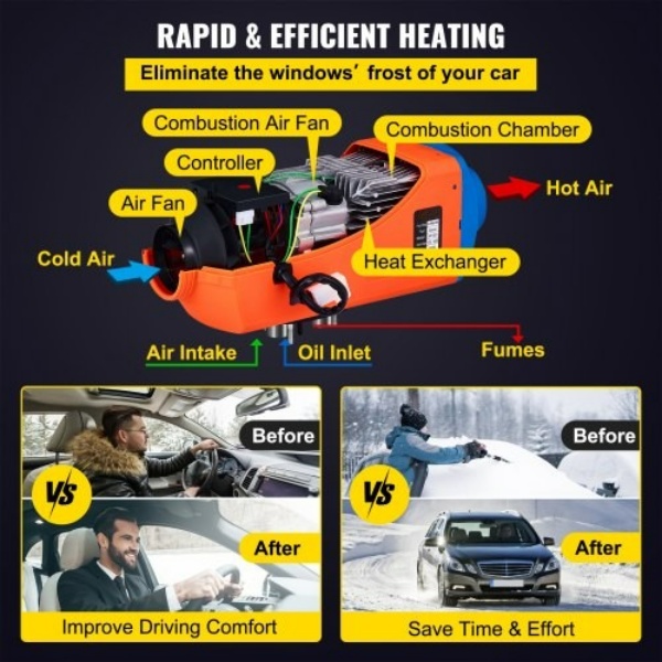 Účinný naftový ohrievač – Pracovná teplota ohrievača: -40 ℃ ~ + 20 ℃; Pracovná teplota olejového čerpadla: -40 ℃ ~ + 20 ℃. Počas chladných zimných dní sme pre vás pripravili tento naftový ohrievač vzduchu, ktorý zahreje vaše auto a odstráni námrazu na oknách. Vďaka rýchlemu ohrevu a nízkej hlučnosti funguje hliníkový ohrievač bez problémov v akomkoľvek náročnom prostredí.