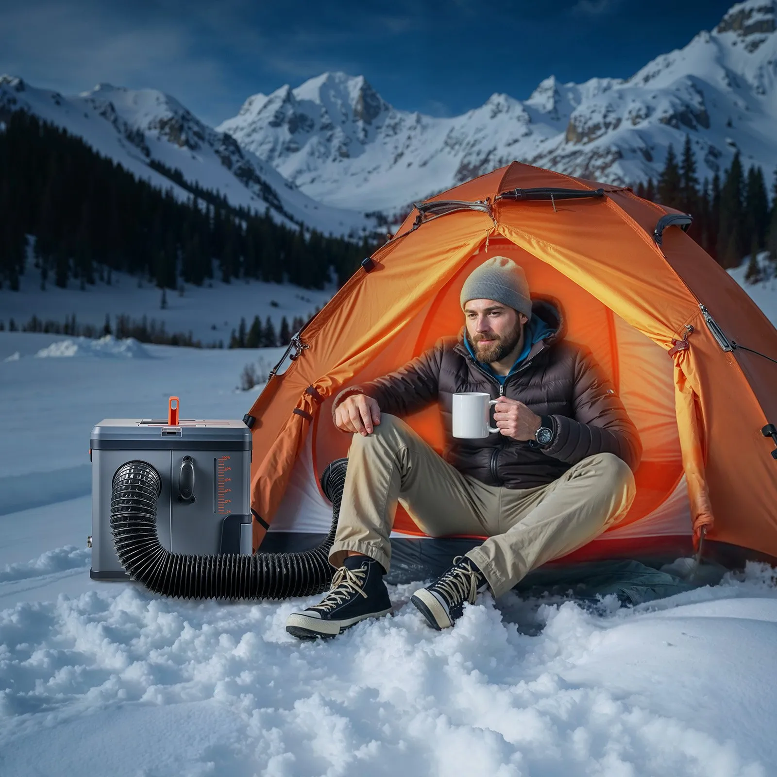 Rýchle vykurovanie: Náš 8 kW naftový ohrievač vykuruje miestnosti s rozlohou od 38 do 54 m² na teplotu až 100 °C za 5 minút a zabezpečí príjemné vykurovanie interiéru vozidla za 10 minút. Funguje na 12 V/24 V alebo na 220 V zásuvku. Vďaka svojmu dizajnu „všetko v jednom“ sa ľahko prepravuje.