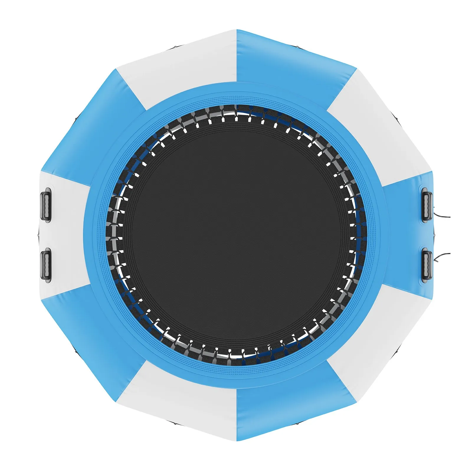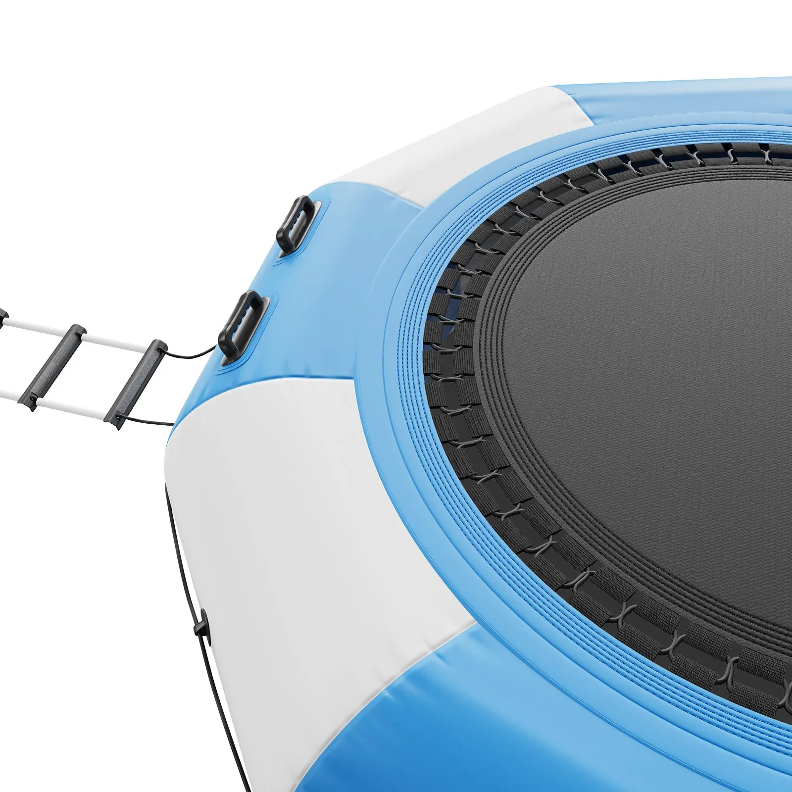 Nafukovacia vodná trampolína s rebríkom, vodotesná, odolná voči oderu, skákacia plocha 3,05 m, skákacia plošina, trampolína do aquaparku, modrá + biela, nosnosť 185 kg