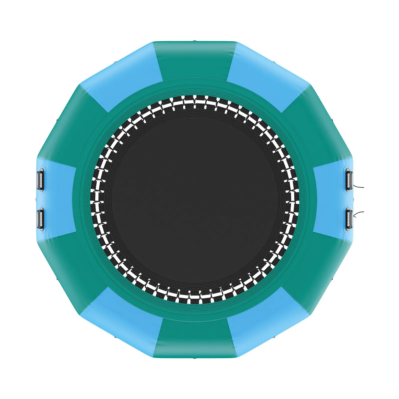 Nafukovacia vodná trampolína s rebríkom, vodotesná, odolná voči oderu, skákacia plocha 3,66 m, skákacia plošina, trampolína do aquaparku, modrá + zelená, nosnosť 226 kg