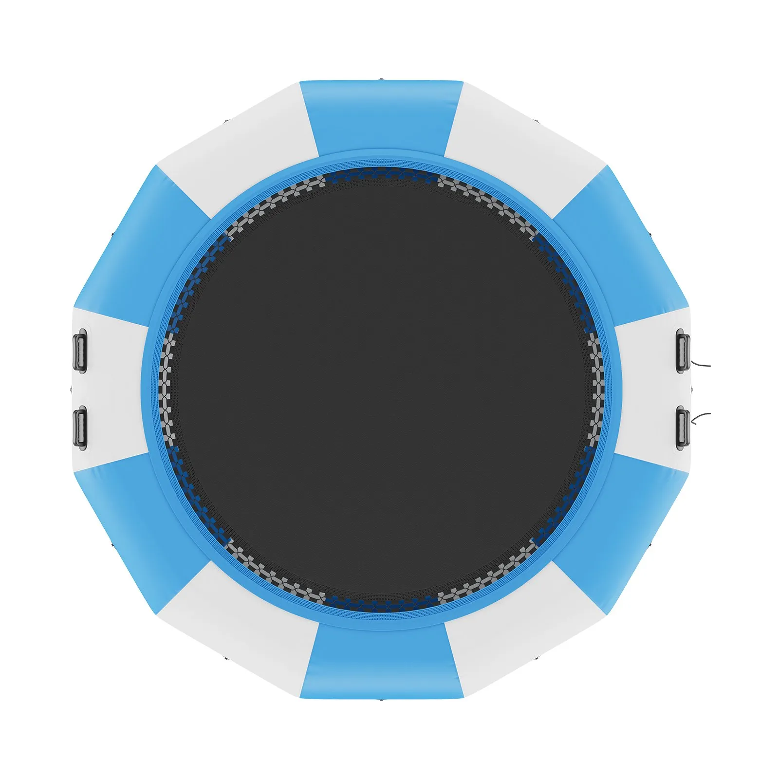 Nafukovacia vodná trampolína s rebríkom, vodotesná, odolná voči oderu, skákacia plocha 3,96 m, skákacia plošina, trampolína do aquaparku, modrá + biela, nosnosť 226 kg